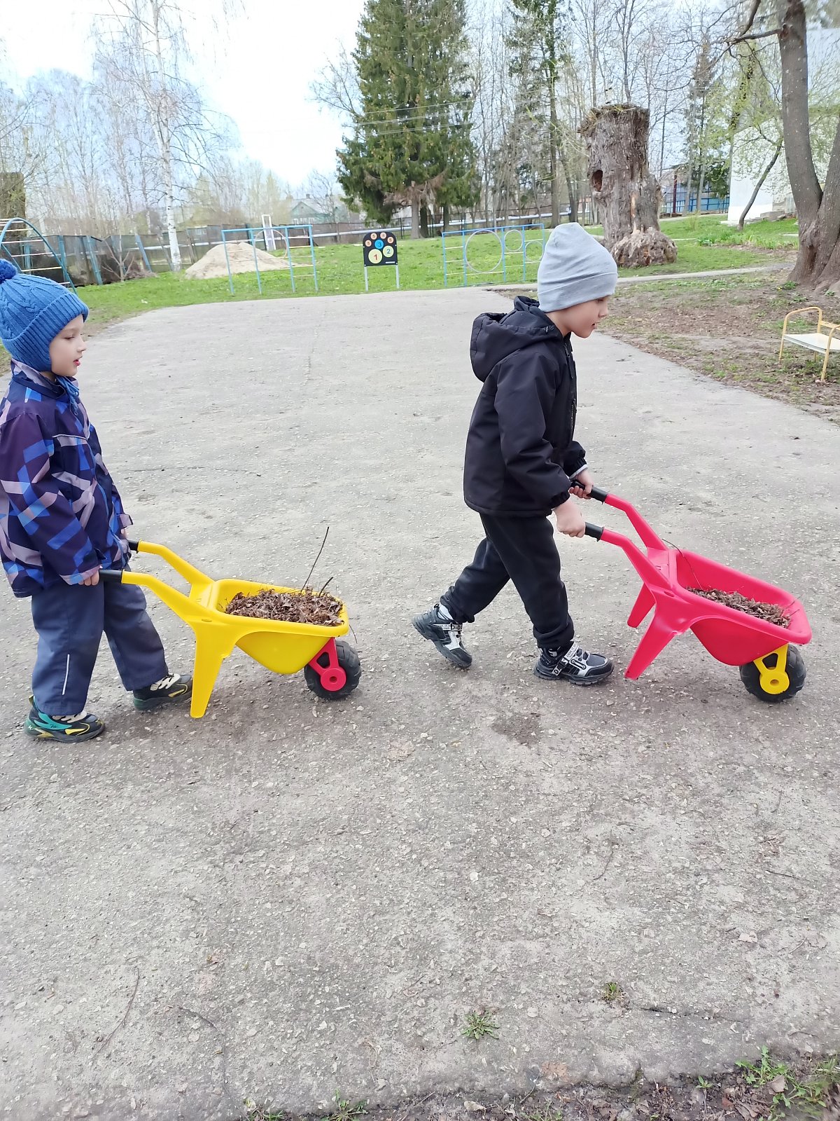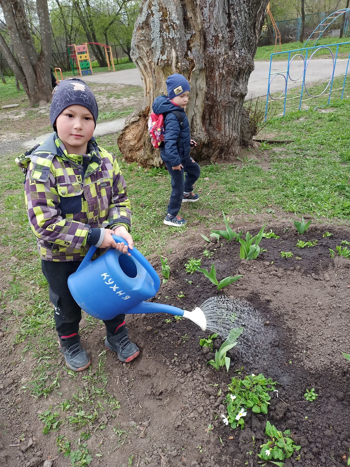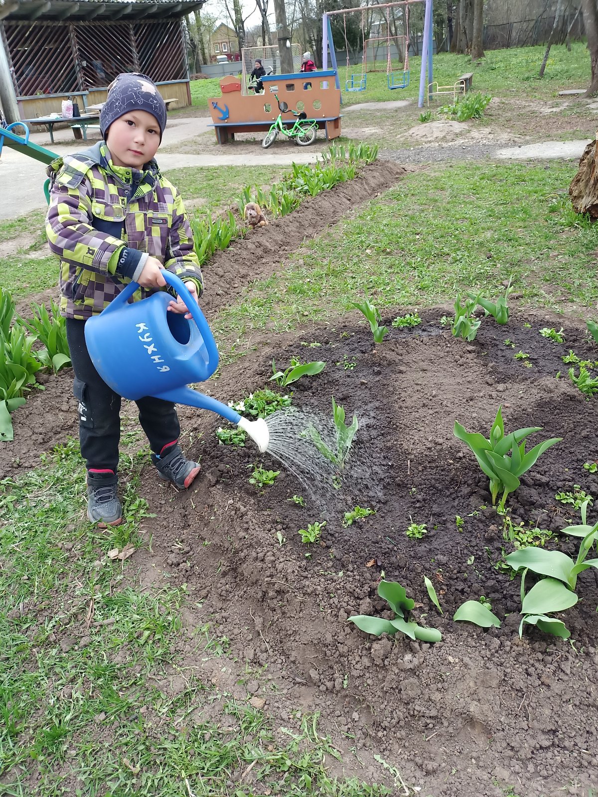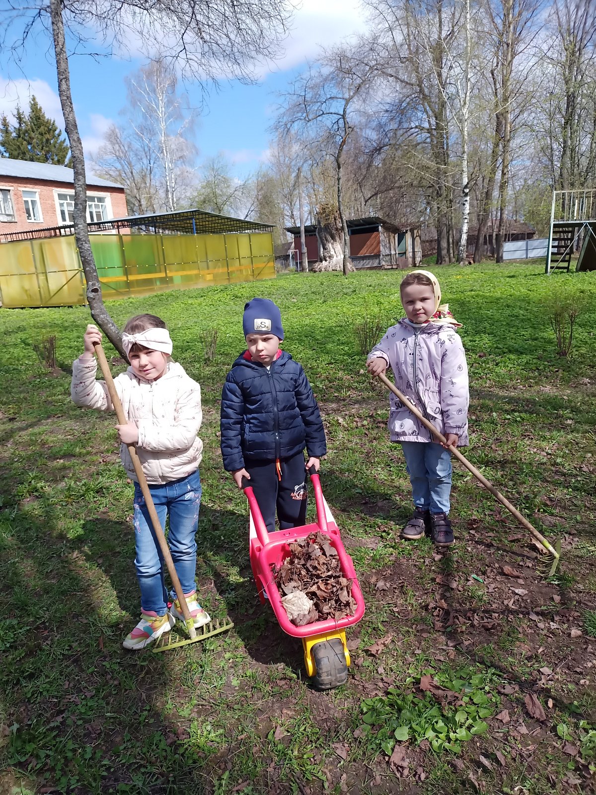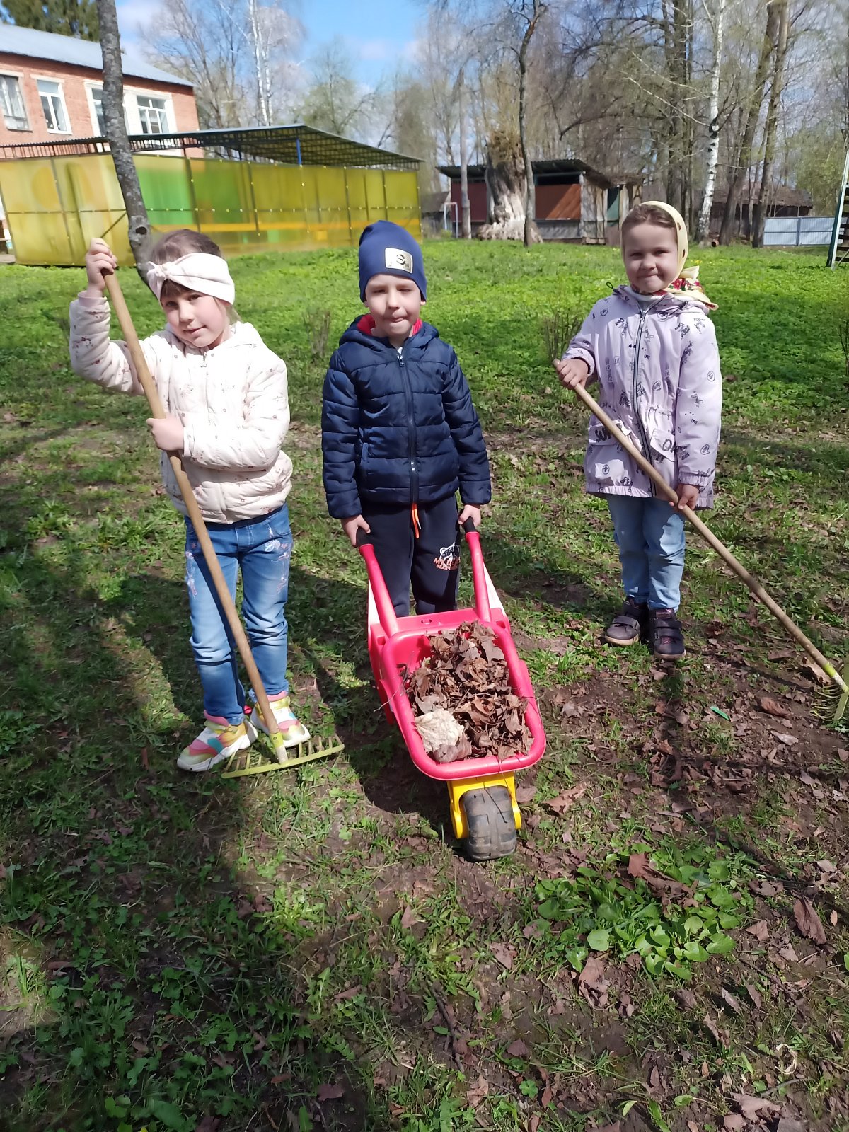 Весело и дружно все вместе мели дорожки, гребли сухие листья, собирали мусор, поливали посаженные цветы, чтобы они поскорее выросли и радовали нас. Работа у всех спорилась, и время пролетело очень быстро.