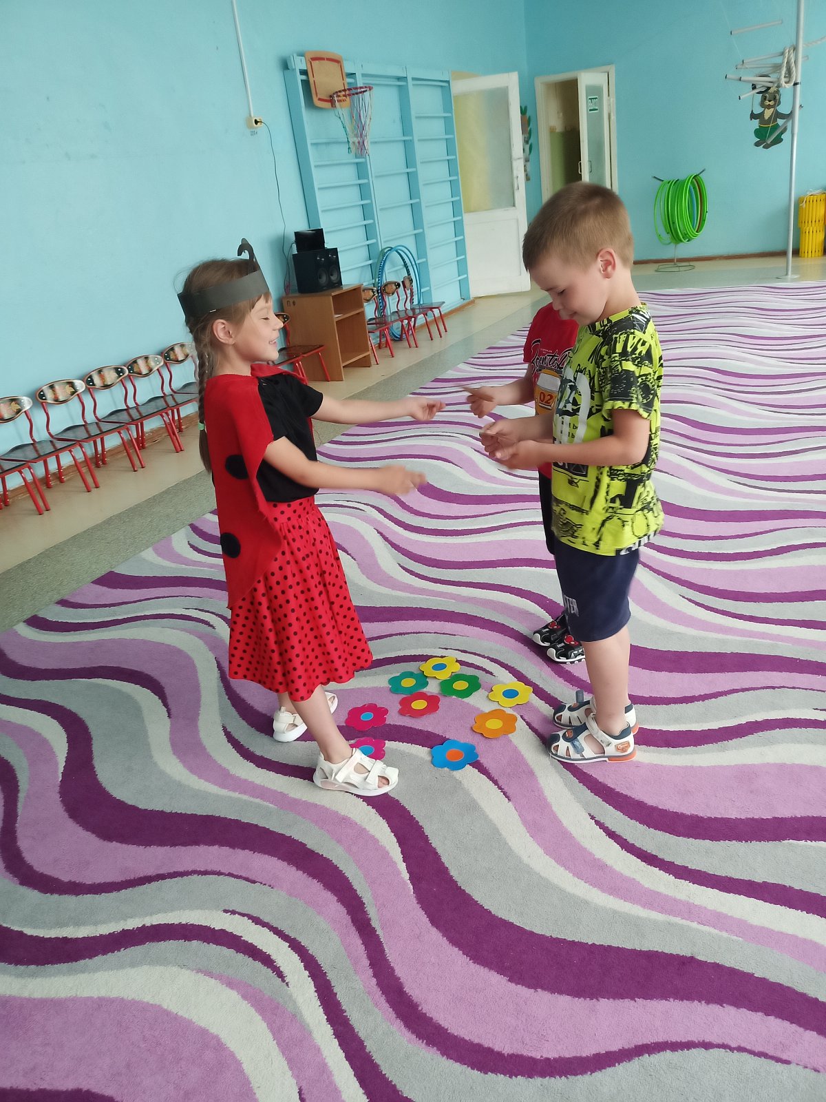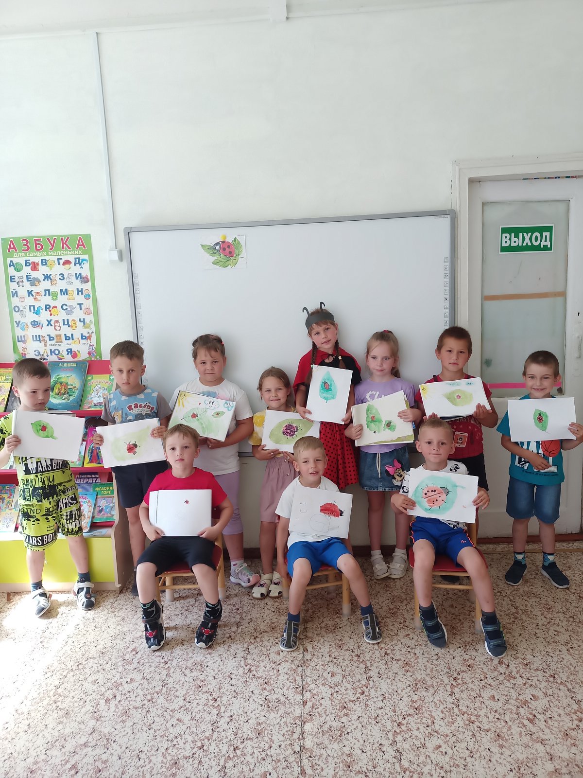 С детьми были проведены познавательные беседы, ребята слушали стихи, сказку, отгадывали загадки. С интересом дети рассматривали иллюстрации с божьими коровками и узнали интересные факты о существовании таких красивых насекомых, и что нужно бережно относиться ко всему живому, что нас окружает. Сегодня поиски божьей коровки на прогулке не увенчались успехом. Зато в гости к дошколятам прилетела сама Божья коровка, она провела для ребят викторину, поиграла в игры. Для нашей Божьей коровки дети нарисовали веселых подружек на память об этом дне. Завершили игровую программу веселым танцем «Божья коровка». Этот день прошёл насыщено, весело и познавательно.
