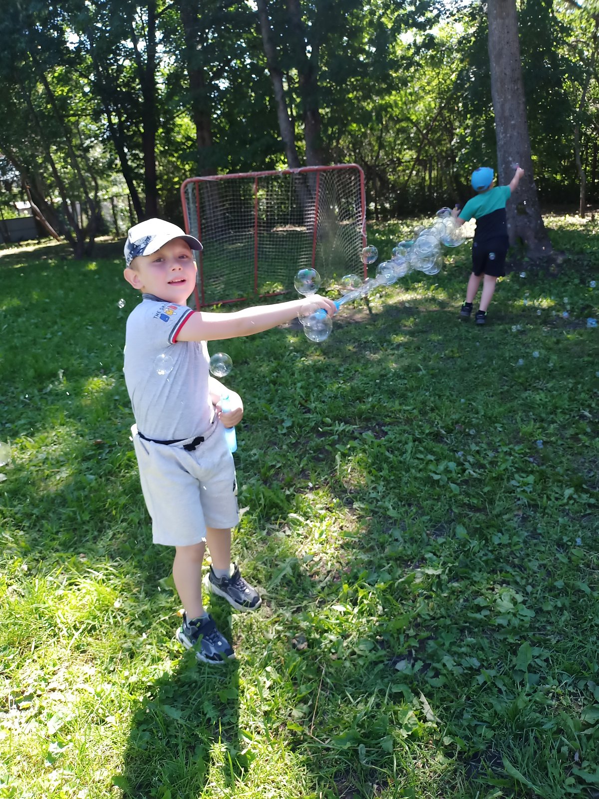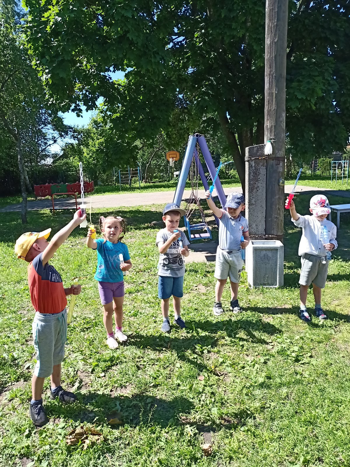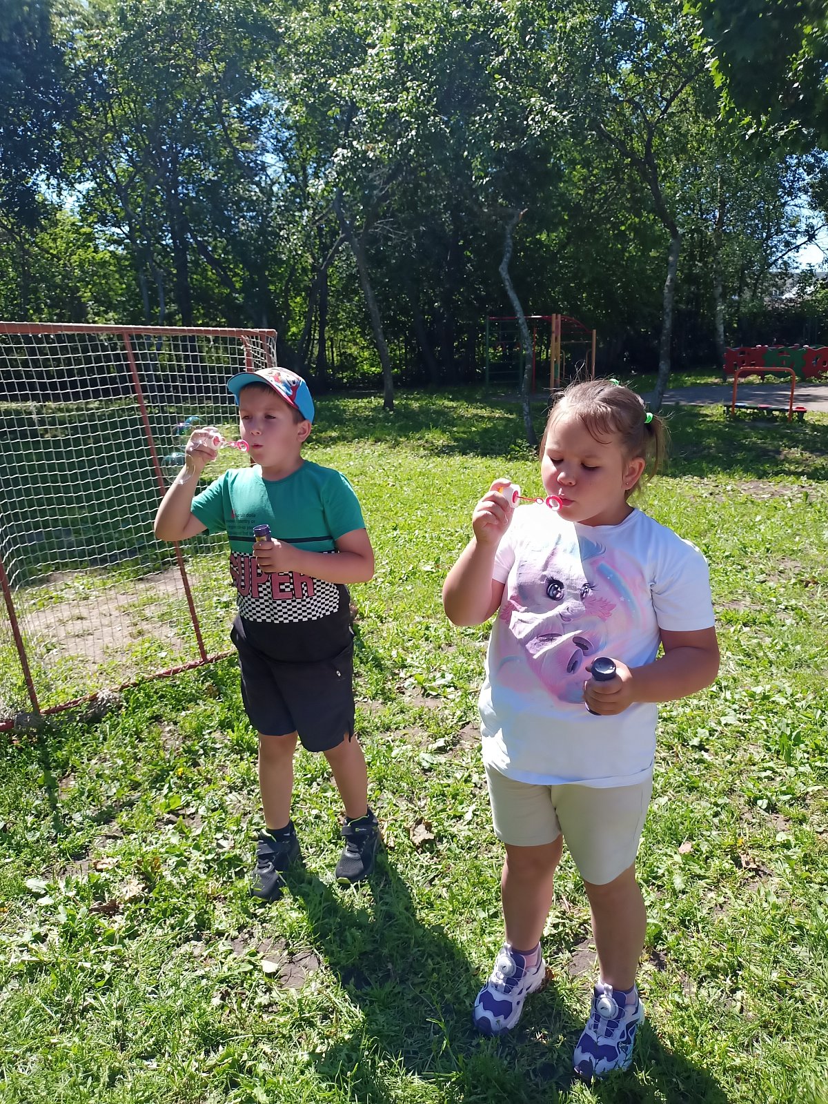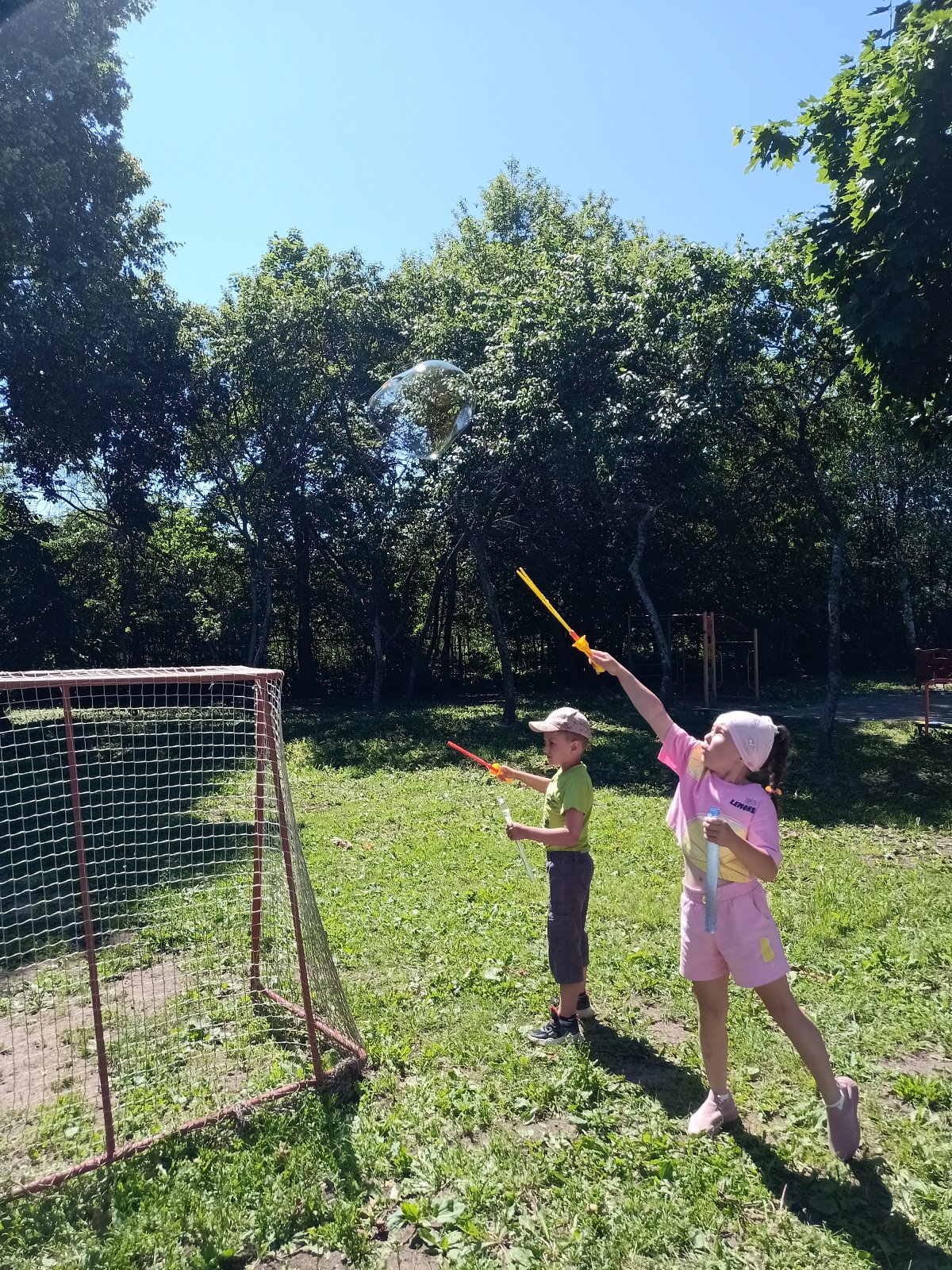Старшие дошкольники участвовали в разных конкурсах: «Чей пузырь улетит выше», «Самый большой пузырь», «Пузырный волейбол», и другие.