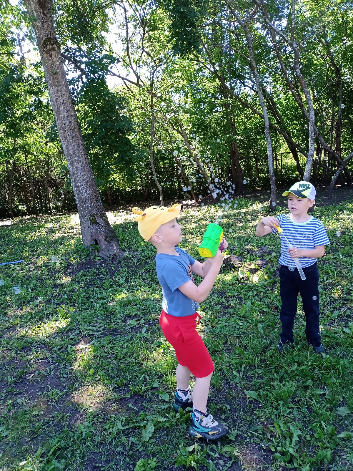 Малыши с удовольствием пускали мыльные пузыри на свежем воздухе,