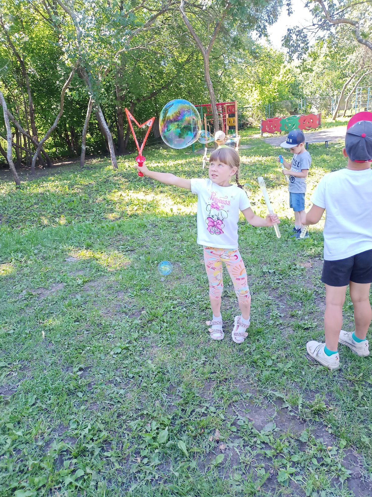 После дискотеки прошло развлечение на свежем воздухе «День мыльных пузырей».