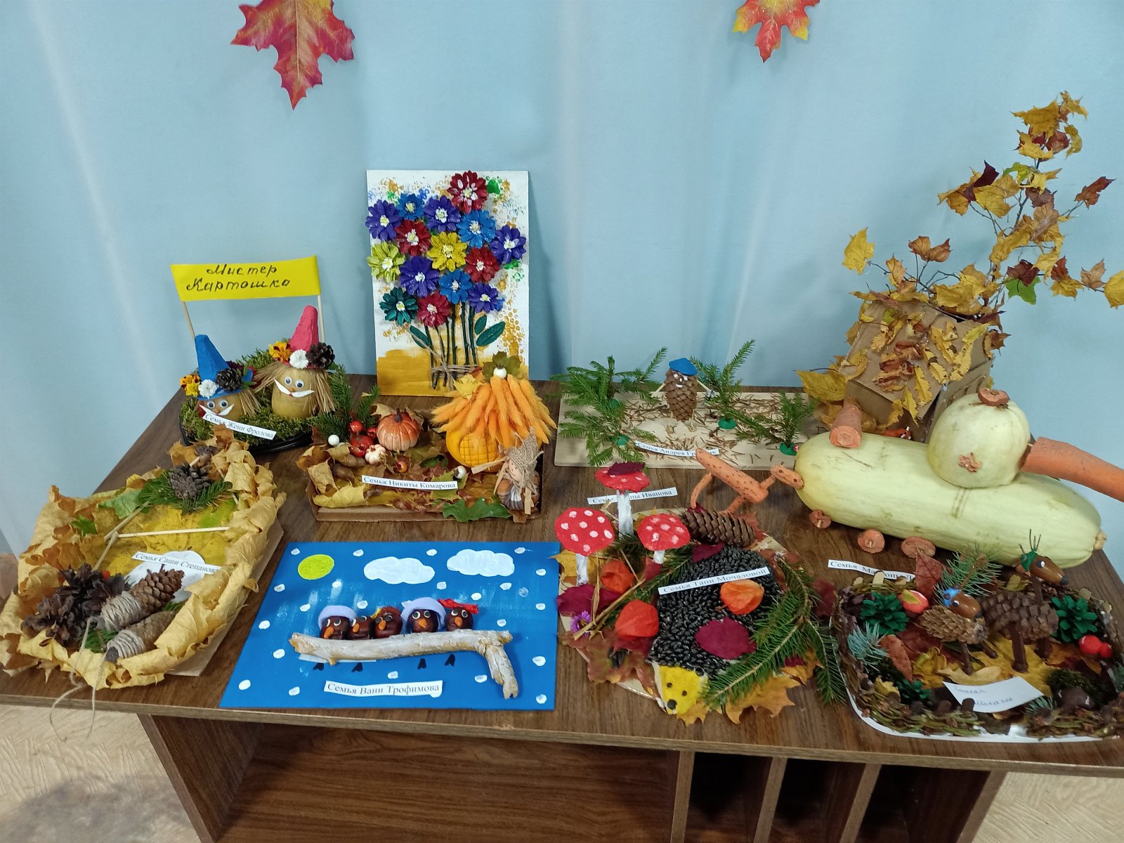 На выставке были представлены работы детей, созданные совместно с родителями. Для создания неповторимых шедевров использовались дары осени – овощи, фрукты, сухоцветы, шишки, листья, ягоды. В каждой работе прослеживалась творческая индивидуальность и фантазия. Все работы оригинальны, неповторимы и интересны. От всего педагогического коллектива выражаем искреннюю благодарность всем участникам выставки за полученное эстетическое удовольствие от созерцания настоящих произведений искусства и надеемся на дальнейшее сотрудничество детского сада и творческих семей.