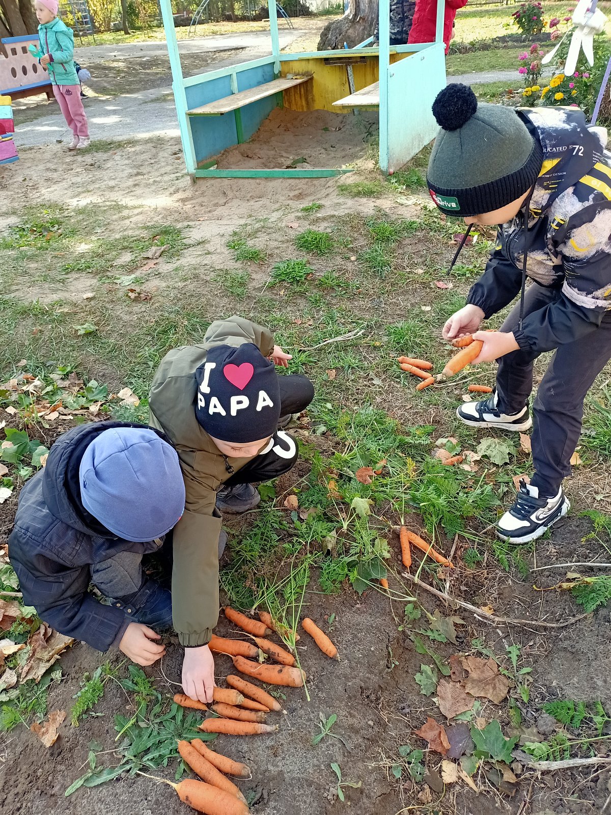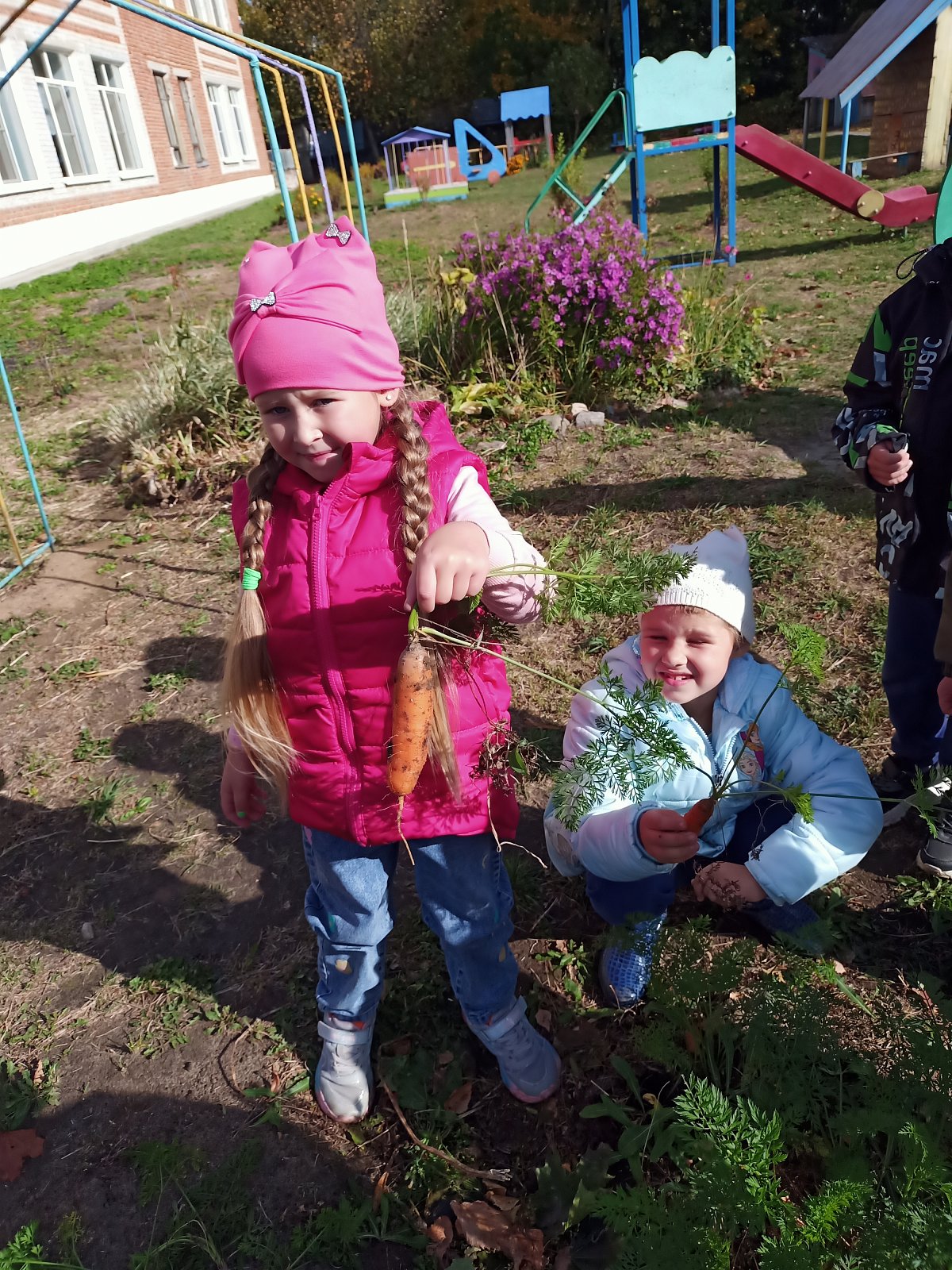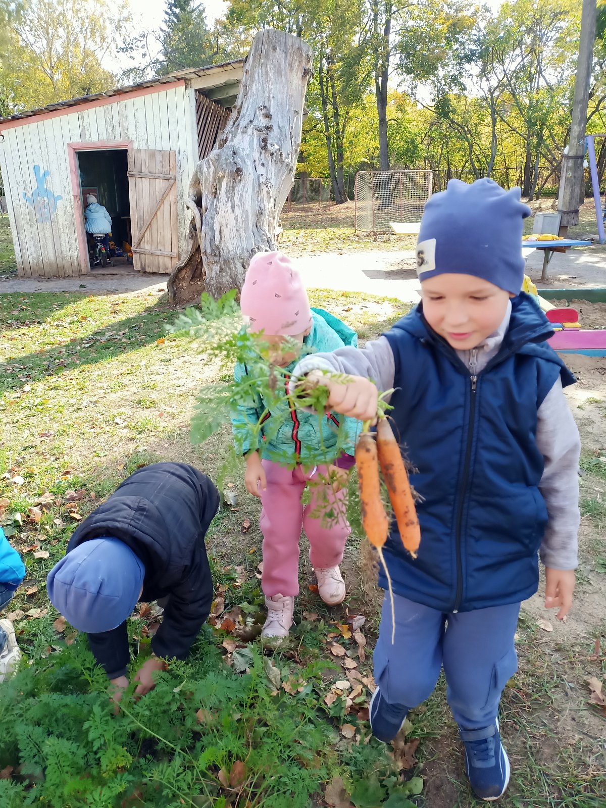 Огород в детском саду - это еще и возможность видеть результаты своей работы. Совместный труд взрослого и ребенка на огороде дает возможность научиться самостоятельности, способствует формированию трудовых навыков и объединению детского коллектива. И конечно, огород - это труд на свежем воздухе, который способствует сохранению и укреплению здоровья детей, гармоничному развитию. Сегодня ребята собрали неплохой урожай моркови, который вызвал у дошкольников огромную радость, чувство гордости за свой труд. Они сначала с интересом рассмотрели её, а потом взяли с собой в группу и попробовали на вкус. Морковка казалась очень сладкая!.