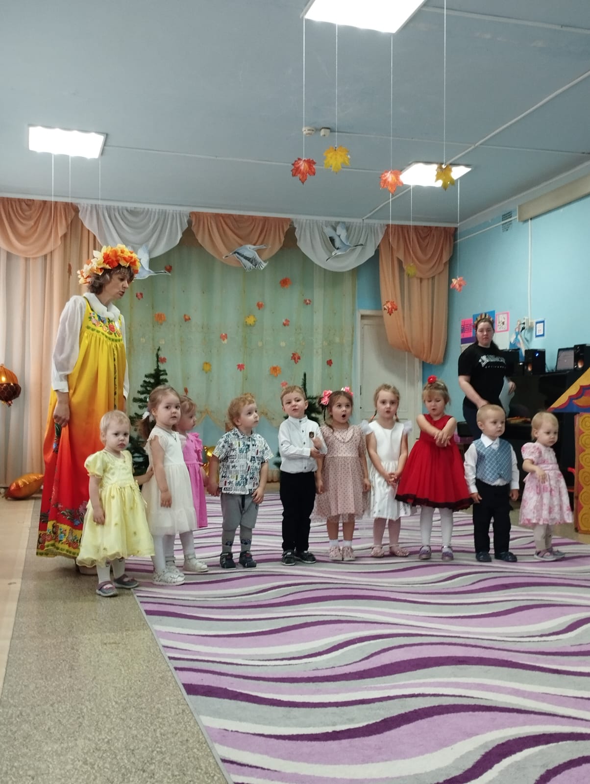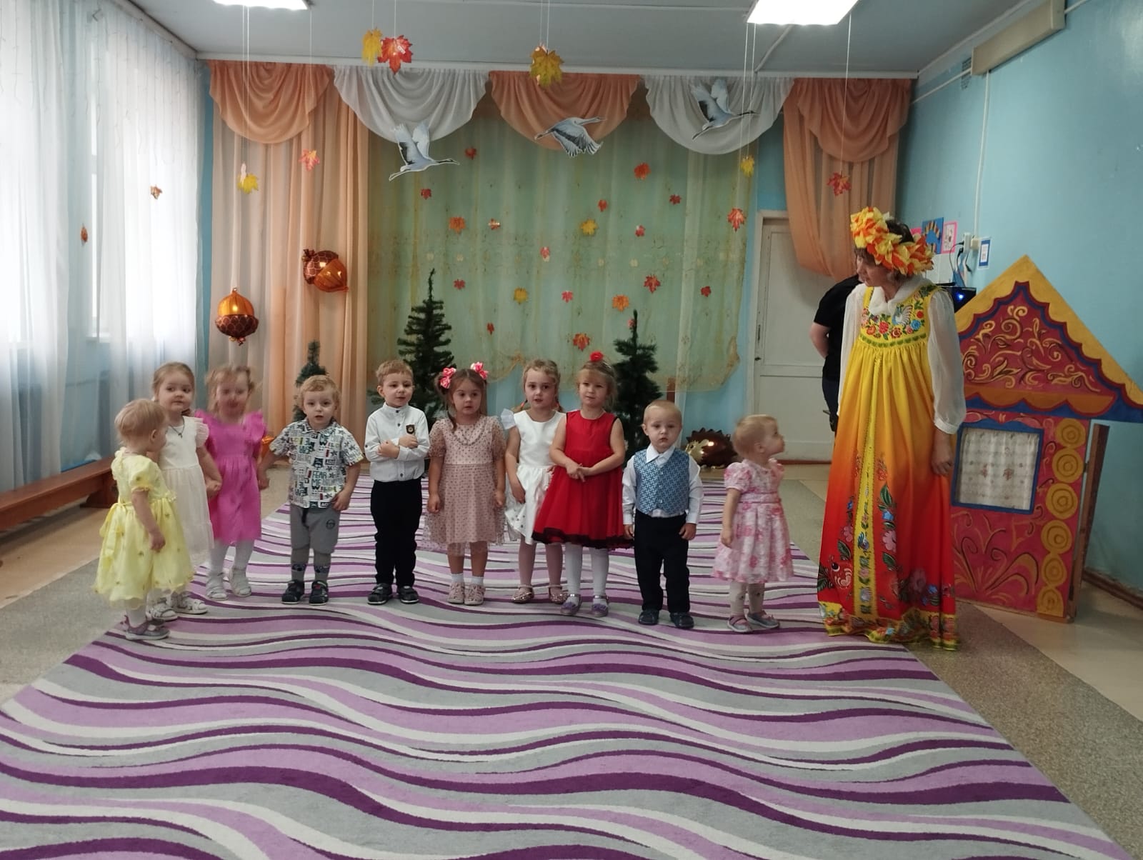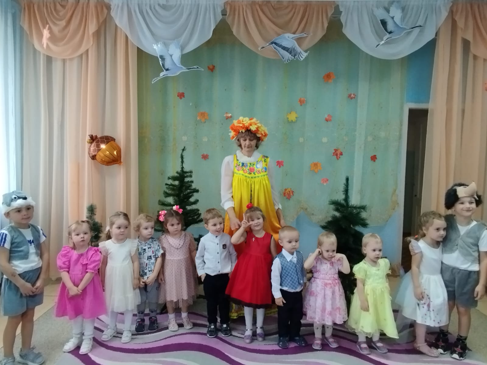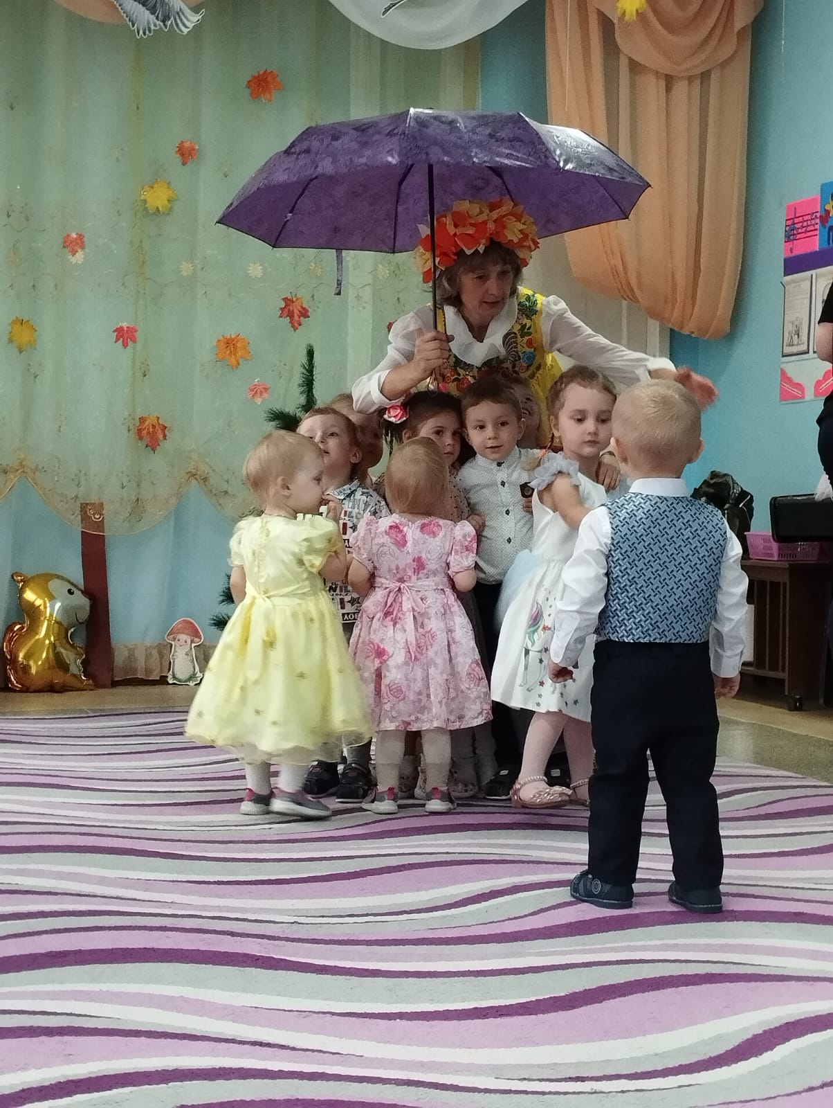 В младшей группе "Пчелка" прошел праздник "Здравствуй, Осень золотая!" В гости к ребятам пришла волшебница Осень. Дети пели песни про осень, про дождик, танцевали с листочками, рассказывали стихи.