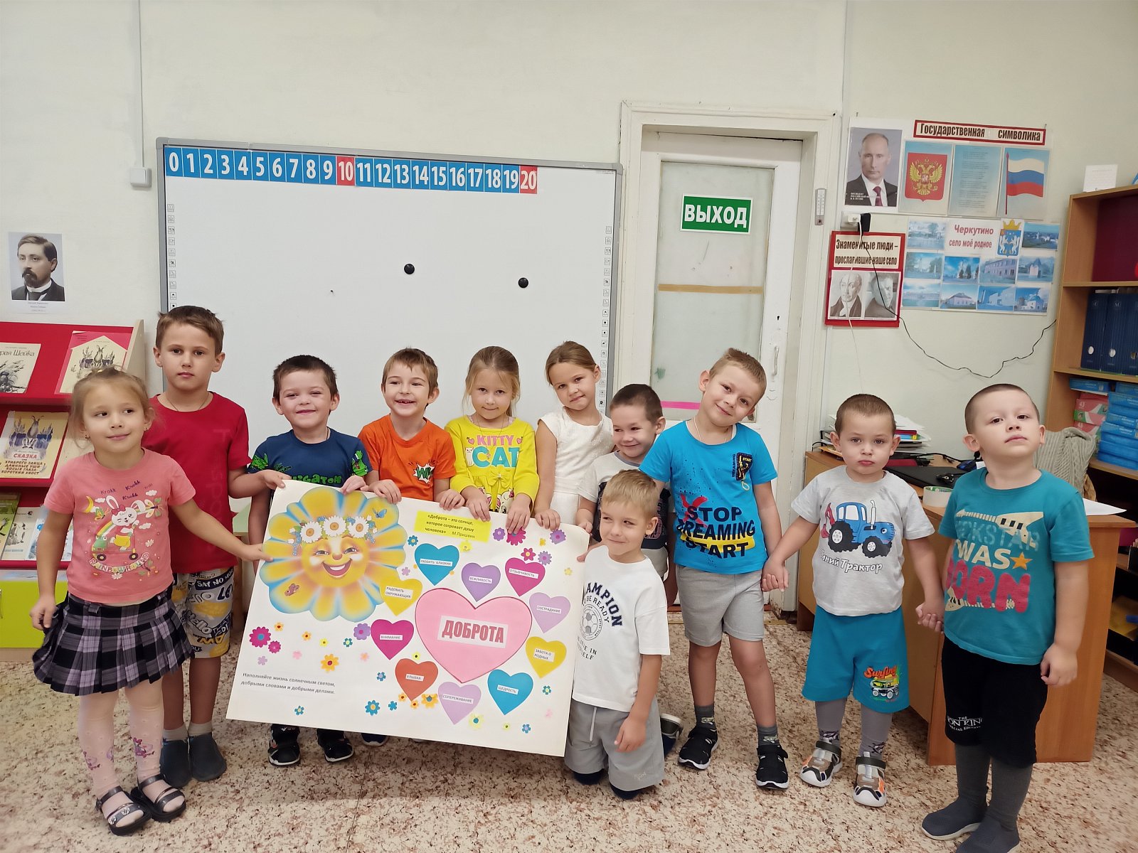 В рамках этого дня в старшей группе «Смешарики» прошло тематическое занятие «Что такое доброта?», в конце которого ребята изготовили плакат «Доброта в нашем сердце». С большим интересом дети играли в игры «Волшебный стул», «Комплименты», «Поделись лучиком», «Найди себе друга» и помогли распуститься Дереву добрых дел. На протяжении всего дня дошкольники оказывали друг другу помощь, помогали одеться на прогулку ребятам из младшей группы, дарили улыбки и говорили приятные слова.