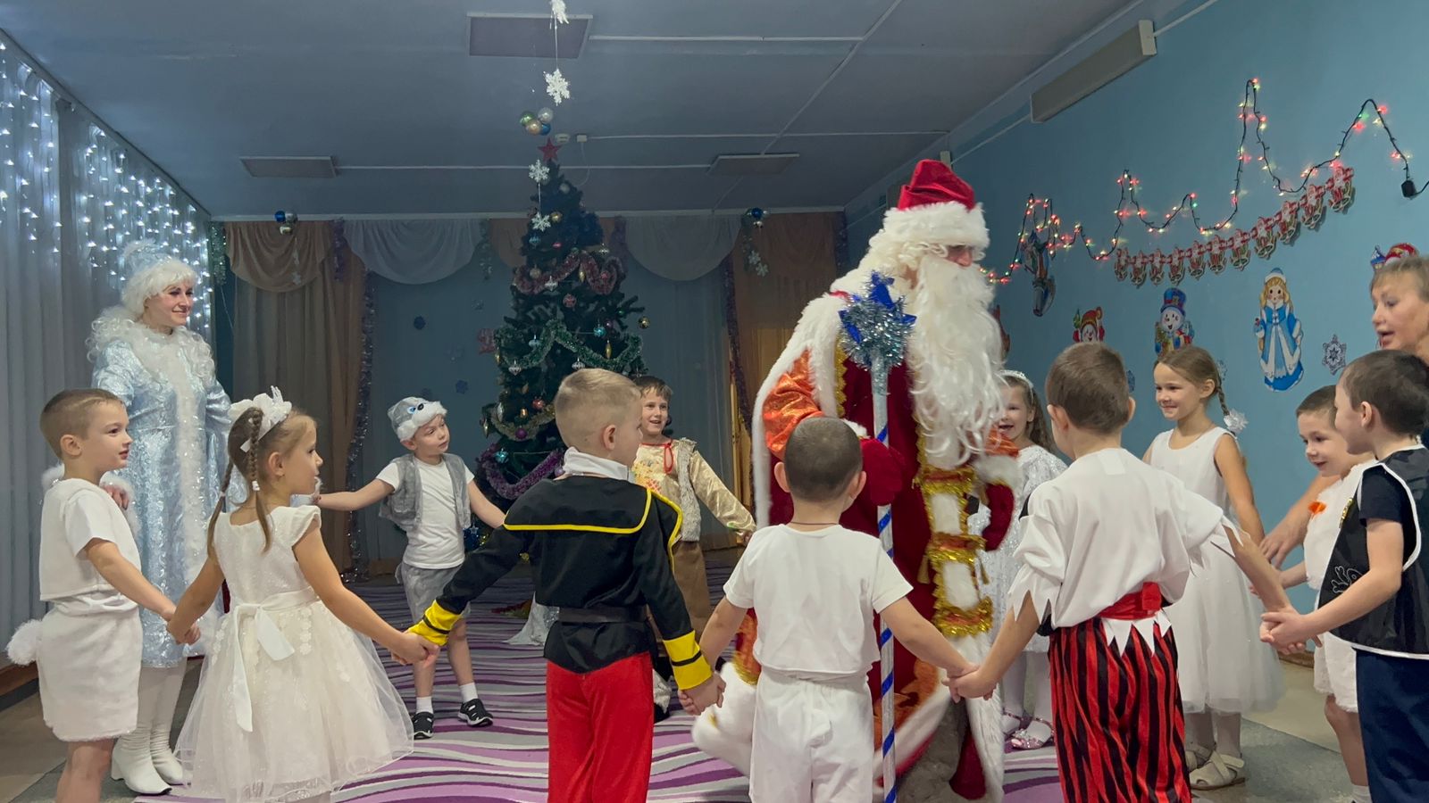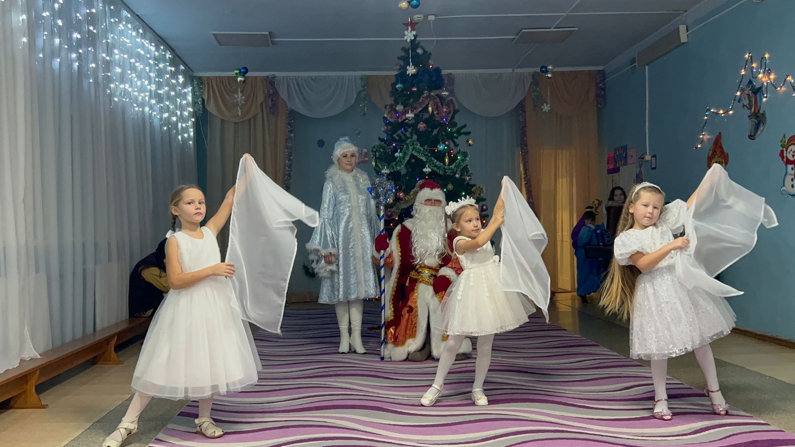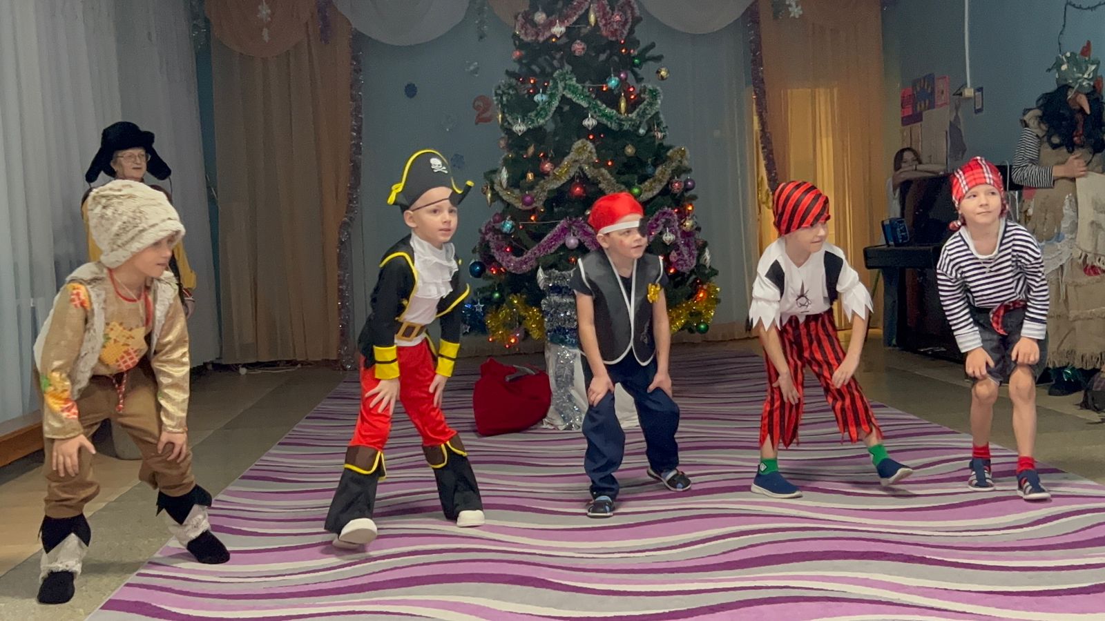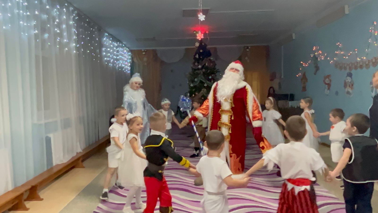 В старшей группе «Смешарики» прошел новогодний утренник "По - змеиному велению" Дети попали в сказку, где Емеля и Змейка искали Деда Мороза и Снегурочку, чтобы надеть корону Змейке и тогда наступит Новый год. Баба Яга и Леший препятствовали поиску, снегом заметали, танцевали, пели, на ёлке огоньки потушили, мешок с подарками спрятали!! Но благодаря Змеиному велению и веселым ребятам все препятствия были преодолены, корону вернули Змейке, Дед Мороз и Снегурочка зажгли огни на Ёлке, и конечно же нашли подарки!