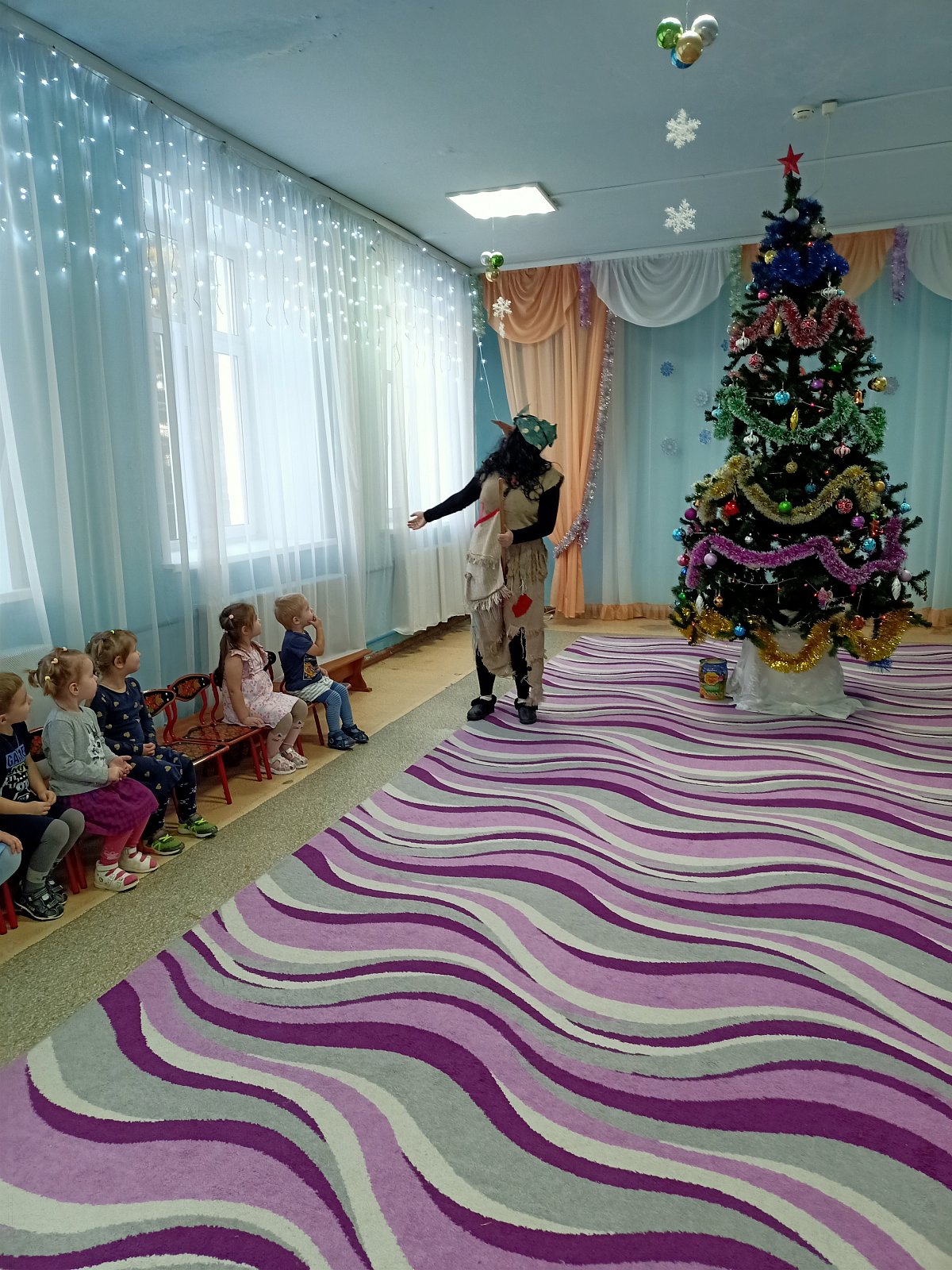 13 января в детском саду прошло развлечение "Прощание с ёлочкой", на которое пришла Баба-Яга. Она очень соскучилась по своей ёлочке. Оказывается, эта ёлочка закрывала её избушку от холодного ветра. Ребята предложили Бабе-Яге, перед тем как она заберёт ёлочку в лес, вместе повеселиться у ёлочки. С большим удовольствием ребята ещё раз поиграли возле ёлочки, вспомнили новогодние хороводы и танцы, исполнили стихи и отгадали зимние загадки. В благодарность ёлочка подарила ребятам сладкие призы. . В конце праздника ребята задули огоньки на ёлке и попрощались с ней до следующего года. Праздник получился весёлым и интересным. Глаза дошколят горели и светились счастьем. Этот праздник оставляет яркий след в душе каждого ребенка и становится ярким и логичным завершением Нового года.