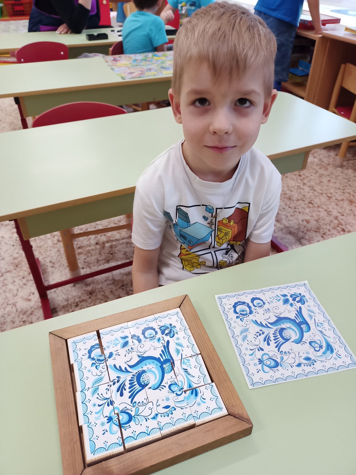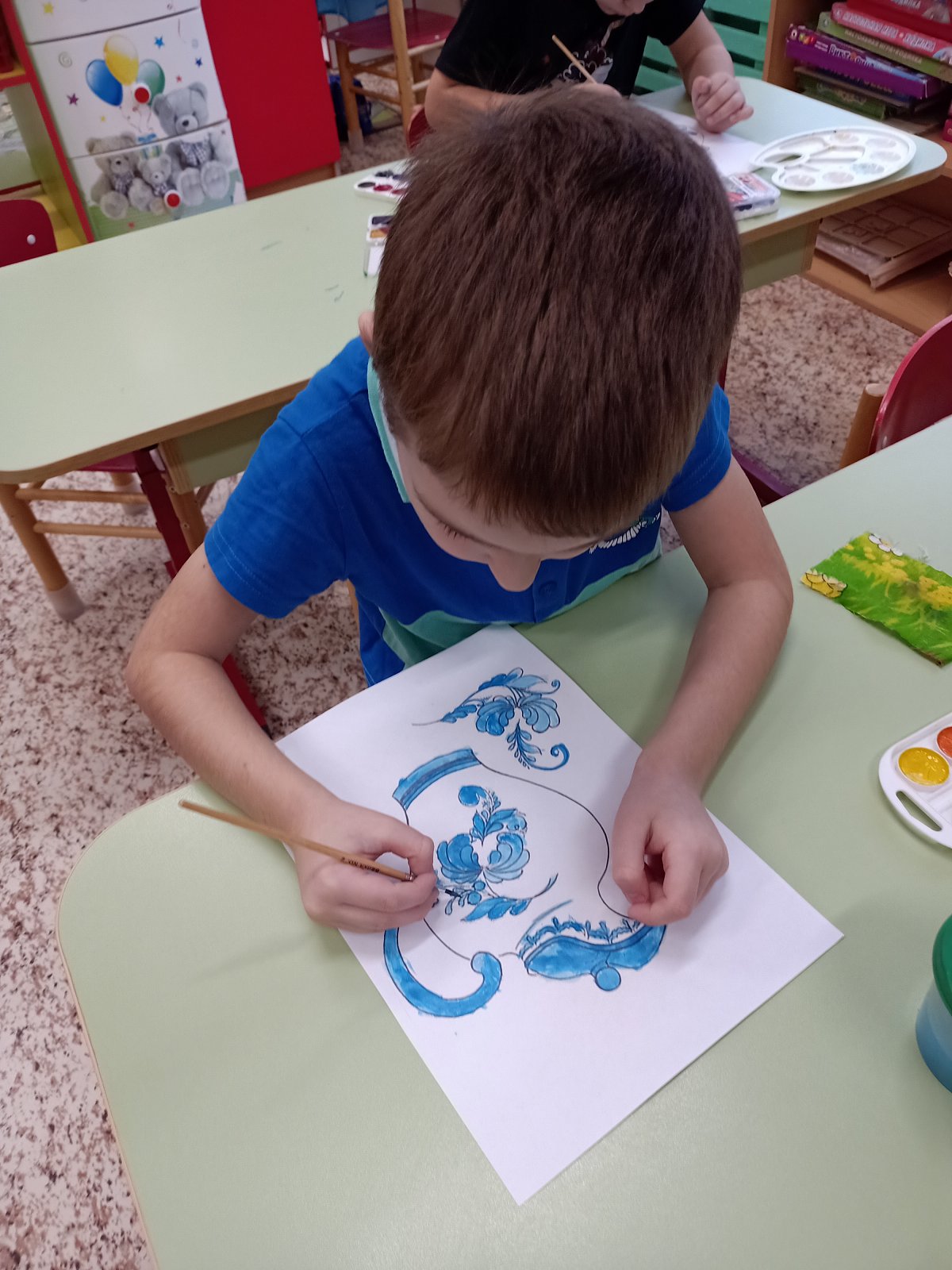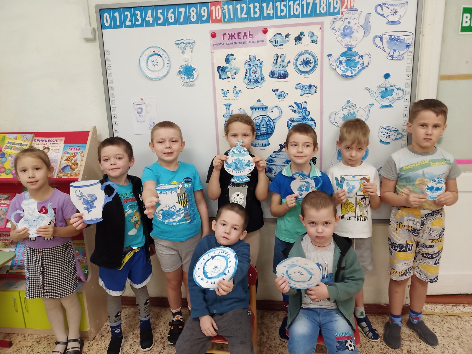 30 января в старшей группе «Смешарики» прошел очередной тематический день. Он был посвящён самобытному промыслу русского народа «Гжельская роспись». В течение дня ребята с удовольствием слушали рассказ о возникновении гжельской росписи, ее истории, узнали о цветовой гамме, элементах росписи, увидели изделия, расписанные в технике Гжель. собирали узоры гжельской росписи из кубиков, закрепляя полученные знания. Затем ребята выбрали по желанию для росписи тарелочки, чайники, вазы и с удовольствием расписали посуду, проявляя свои творческие способности. Дети почувствовали себя мастерами. День получился интересным и насыщенным.