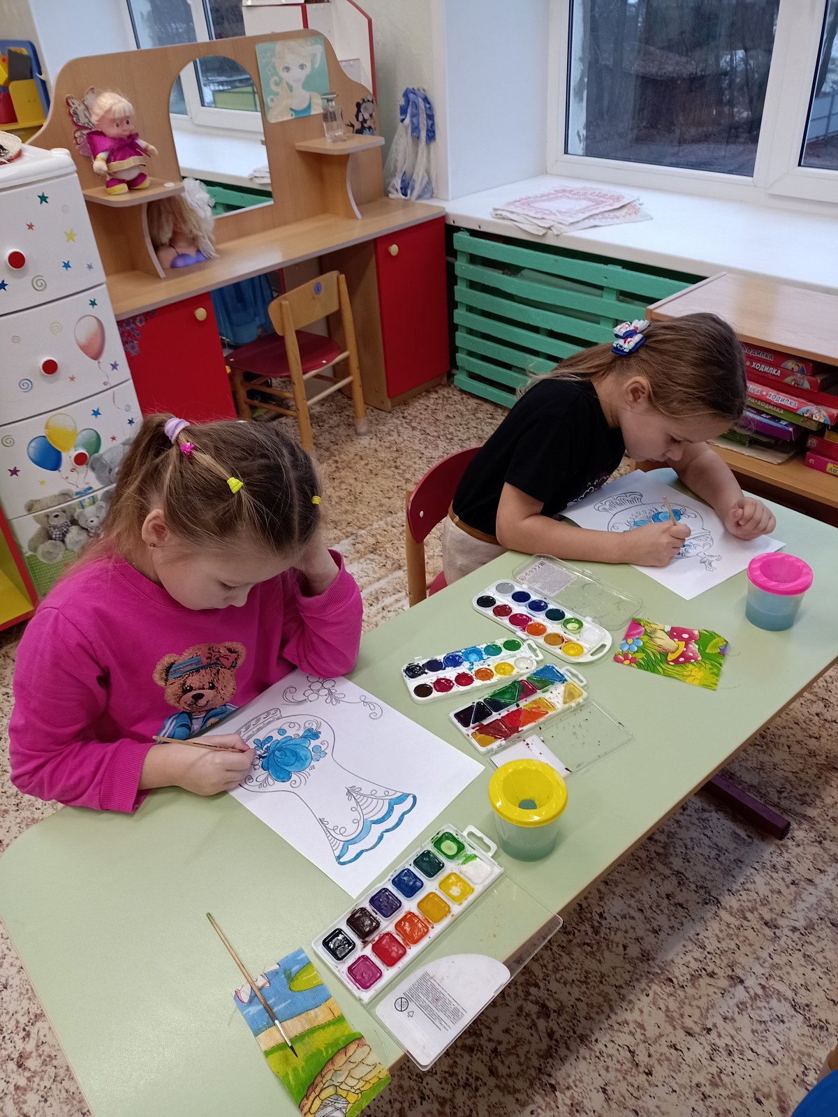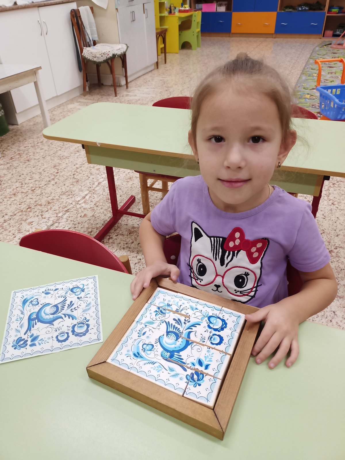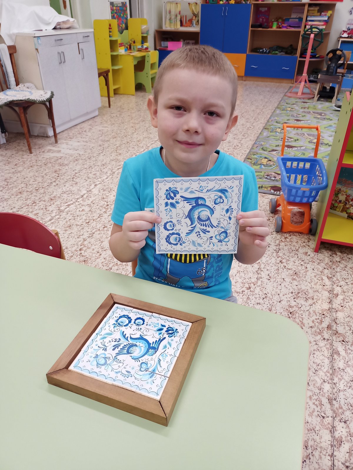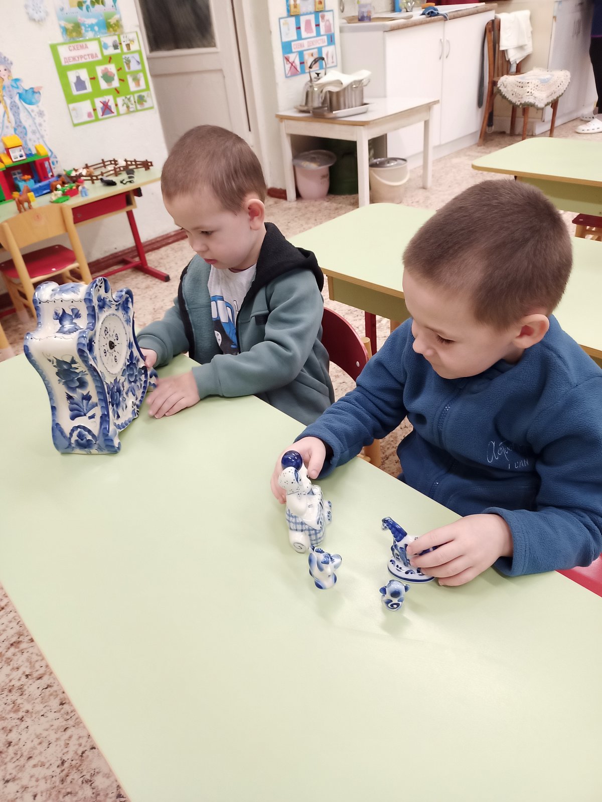 30 января в старшей группе «Смешарики» прошел очередной тематический день. Он был посвящён самобытному промыслу русского народа «Гжельская роспись». В течение дня ребята с удовольствием слушали рассказ о возникновении гжельской росписи, ее истории, узнали о цветовой гамме, элементах росписи, увидели изделия, расписанные в технике Гжель. собирали узоры гжельской росписи из кубиков, закрепляя полученные знания. Затем ребята выбрали по желанию для росписи тарелочки, чайники, вазы и с удовольствием расписали посуду, проявляя свои творческие способности. Дети почувствовали себя мастерами. День получился интересным и насыщенным.
