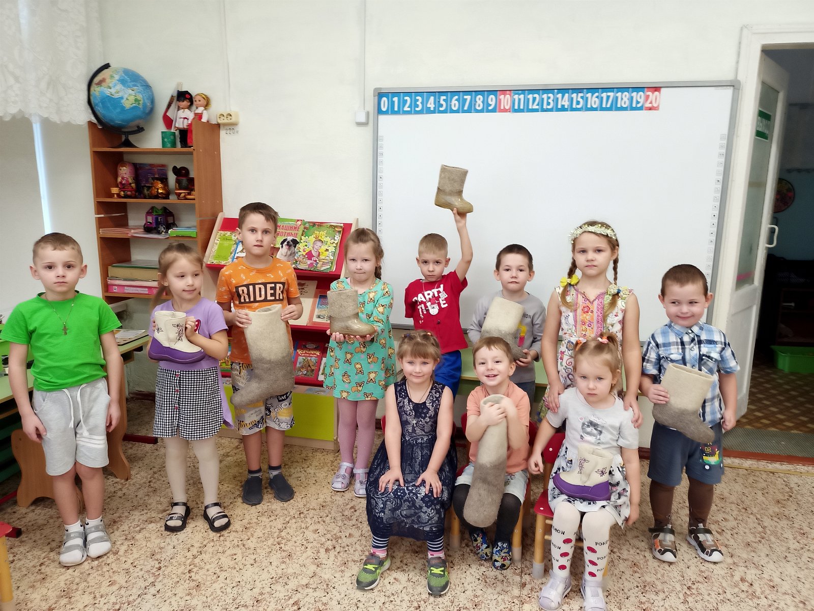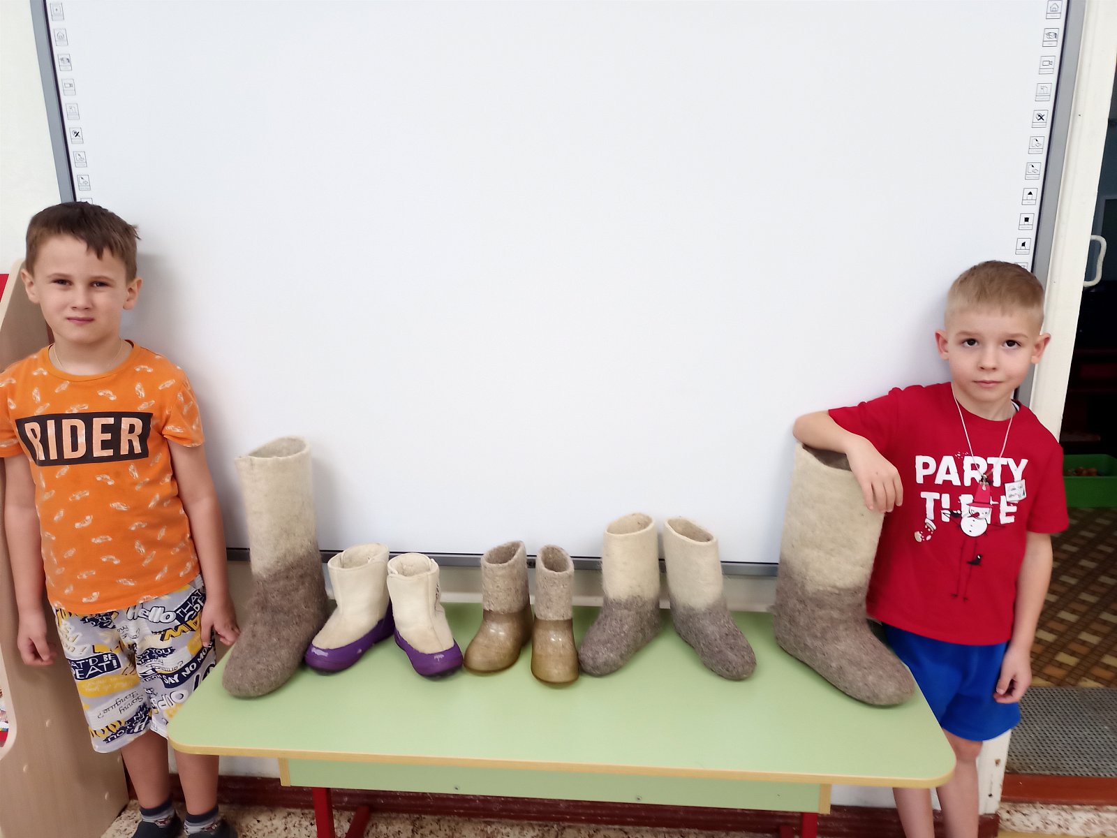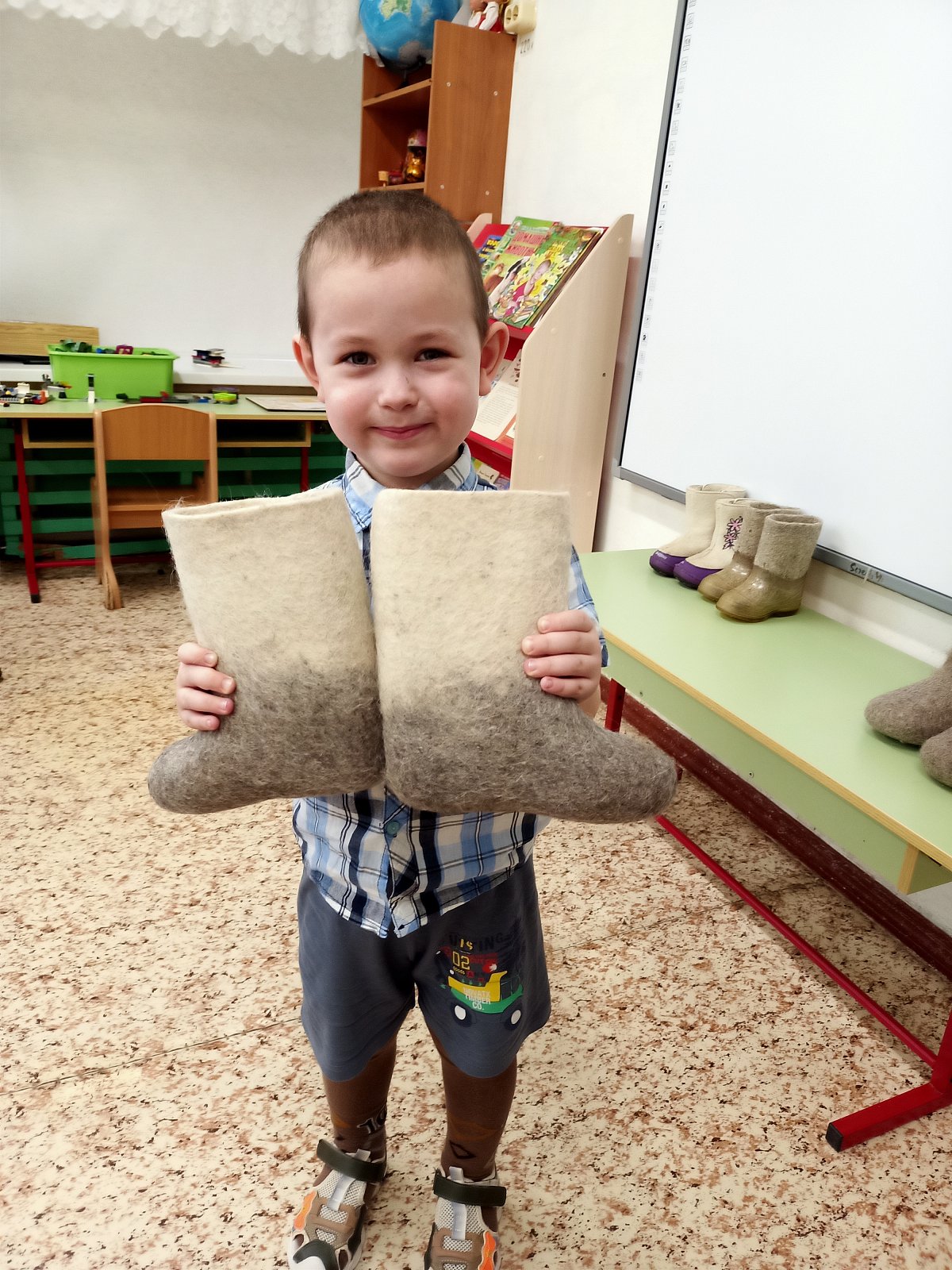 Вот и в в нашем детском саду, в старшей группе «Смешарики» прошло увлекательное мероприятие, посвящённое валенкам. Дошкольники погрузились в историю русского валенка, с большим интересом рассматривали валенки, узнали о них много нового. Ребята просмотрели презентацию, из которой познакомились с русским народным промыслом, технологией изготовления валенок, их значимостью. Также дети узнали о разнообразии видов украшения валенок, что у каждого мастера имеется свой стиль.