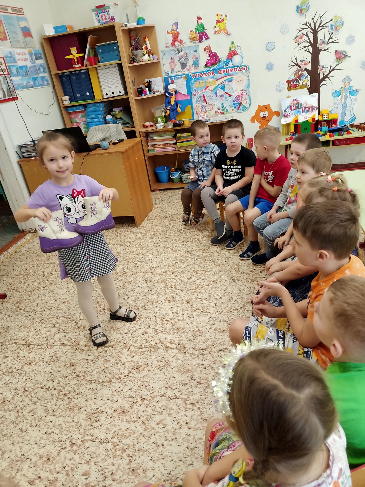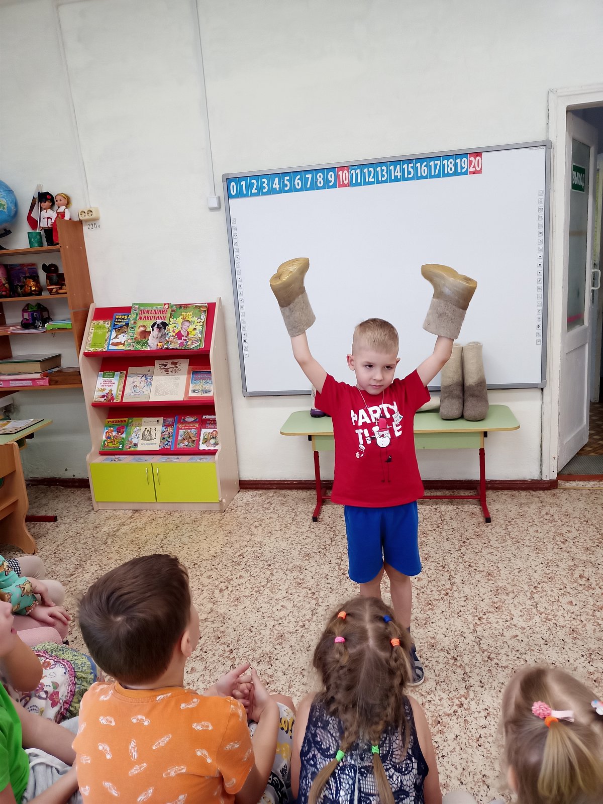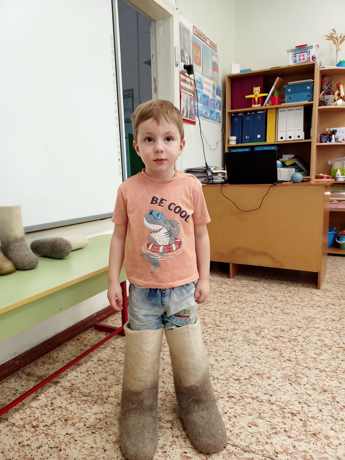 Вот и в в нашем детском саду, в старшей группе «Смешарики» прошло увлекательное мероприятие, посвящённое валенкам. Дошкольники погрузились в историю русского валенка, с большим интересом рассматривали валенки, узнали о них много нового. Ребята просмотрели презентацию, из которой познакомились с русским народным промыслом, технологией изготовления валенок, их значимостью. Также дети узнали о разнообразии видов украшения валенок, что у каждого мастера имеется свой стиль.