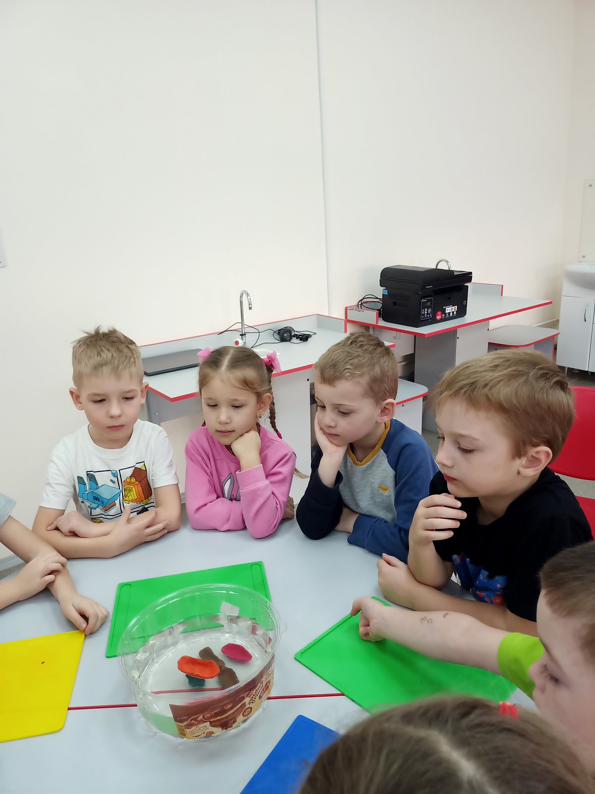 11 марта воспитанники старшей группы «Смешарики» посетили Черкутинскую школу кабинет "Точка роста", где прошло очередное занятие «Интересная физика». Сегодня ребята в процессе экспериментирования и опытов узнали о плавании тел, научились делать корабль из пластилина и нашли ответ на вопрос: почему кусочек пластилина тонет, а корабль плавает? Дошкольники познакомились с понятием выталкивающей силой.