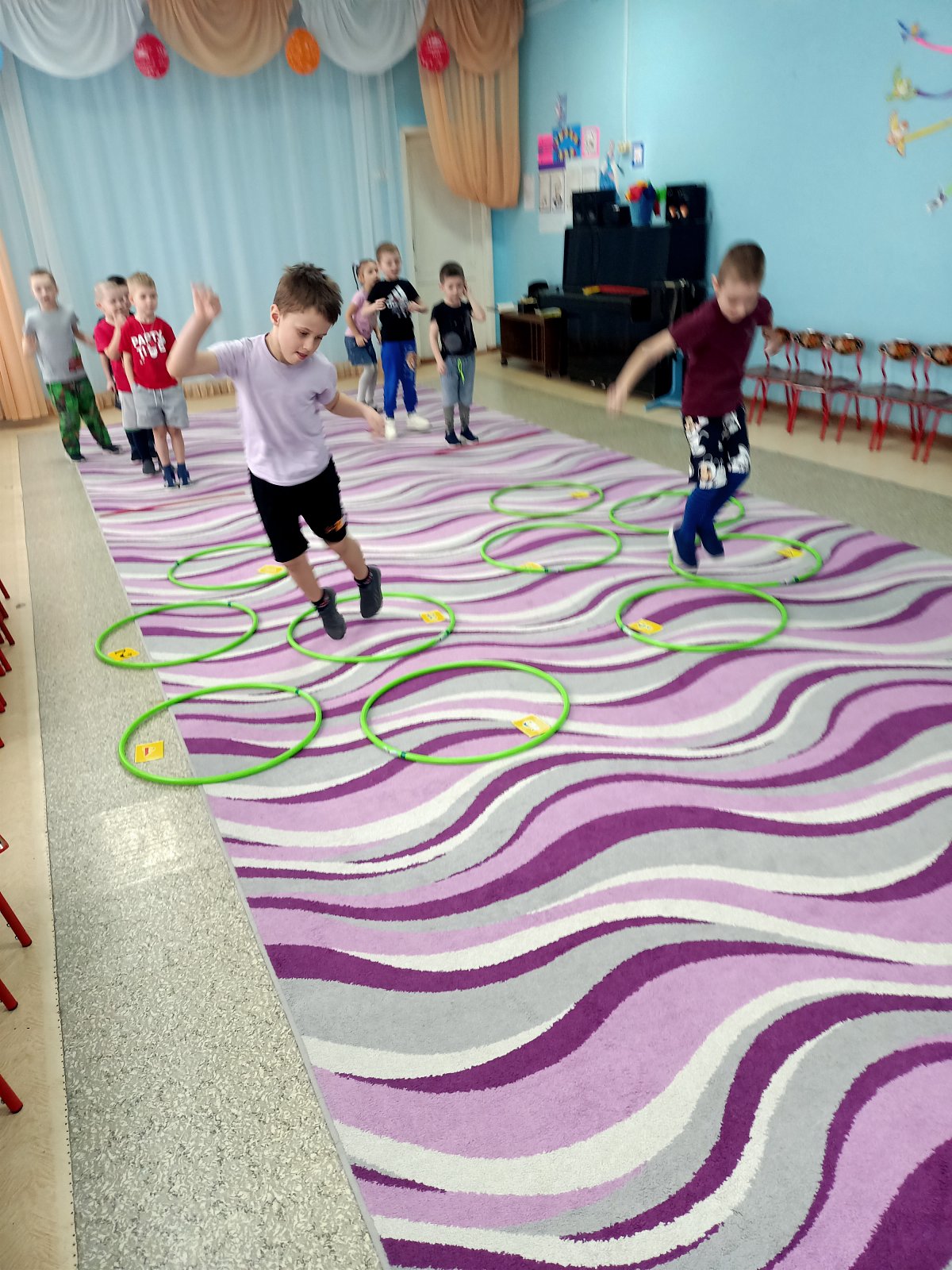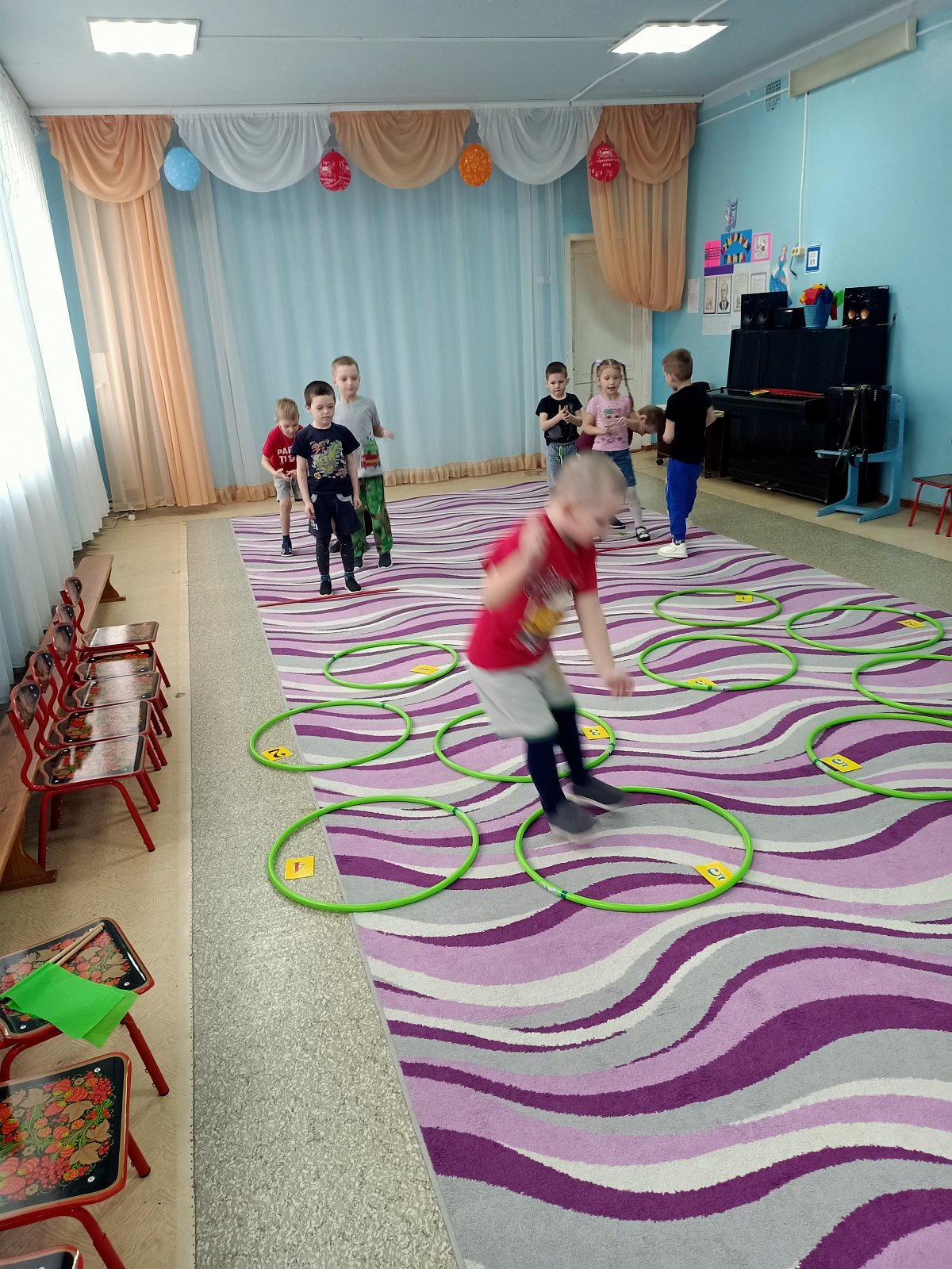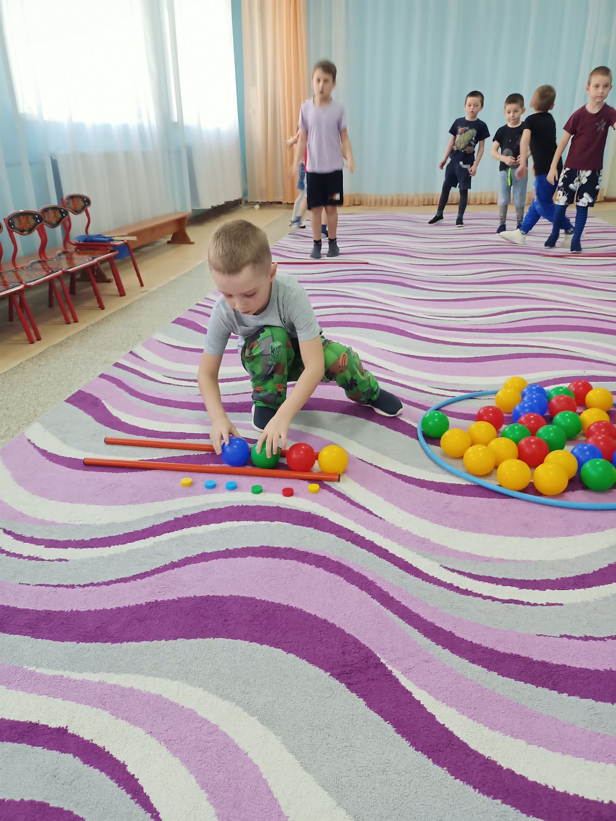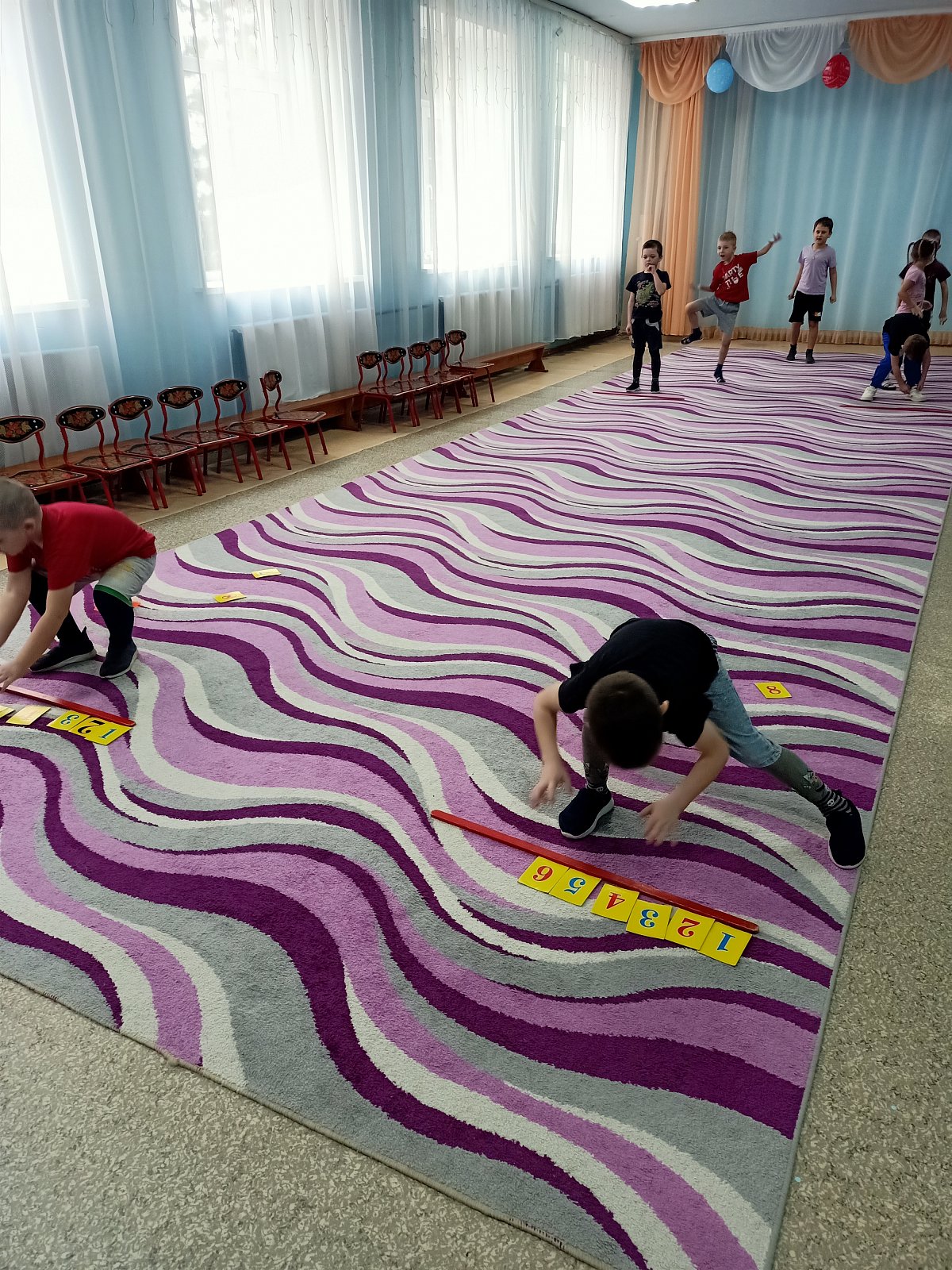 В течение всего дня дети активно участвовали в различных математических играх, развивая свои навыки и способности. Они учились считать, сравнивать, различать цвета и формы, получая не только радость от игры, но и новые знания. Прошли веселые математические эстафеты.