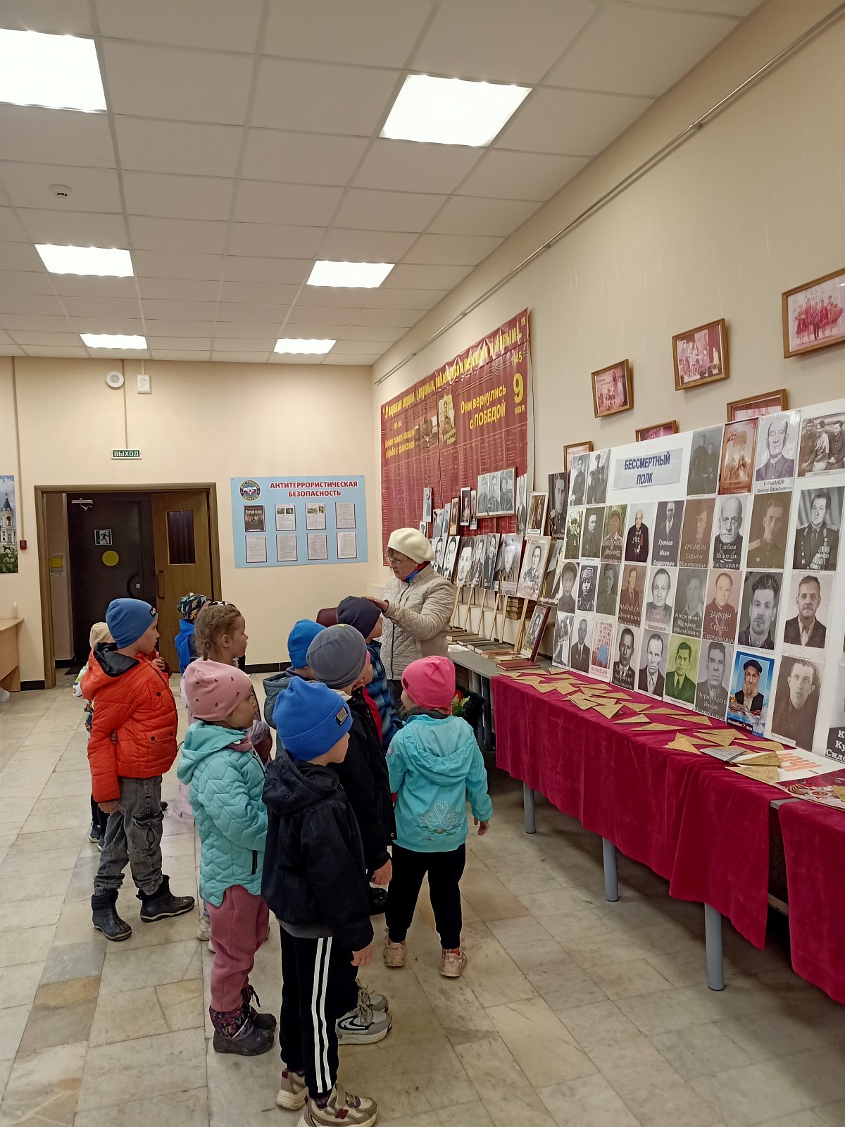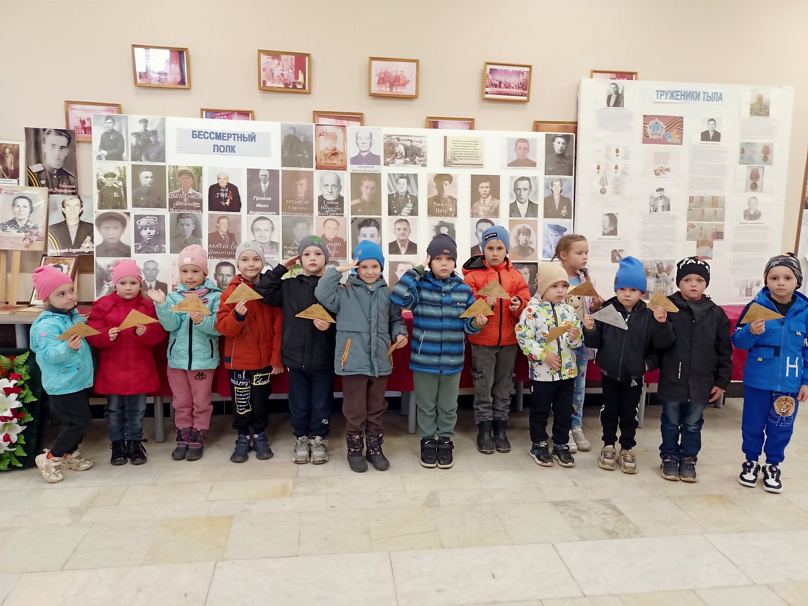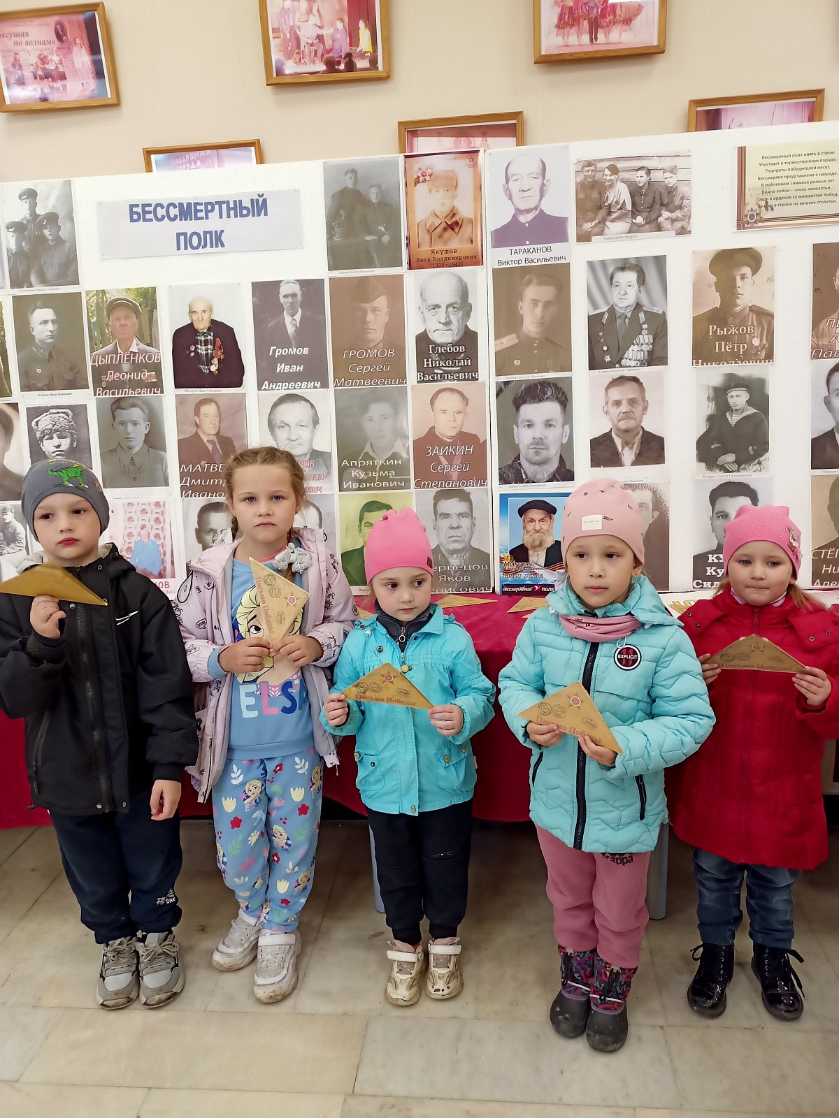6 мая воспитанники старшей группы «Смешарики» совершили экскурсию в Дом Культуры, где познакомились с фотовыставками: «Бессмертный полк» и «Труженики тыла». Ребята с большим вниманием слушали рассказы о героях войны, узнавали портреты своих прадедушек. С интересом дошкольники рассмотрели выставку «Все для Победы!», где представлены маскировочные сети, подушки, носки, рукавицы, свечи, сделанные нашими односельчанами для бойцов на СВО. В завершении экскурсии дети посетили памятник погибшим воинам.