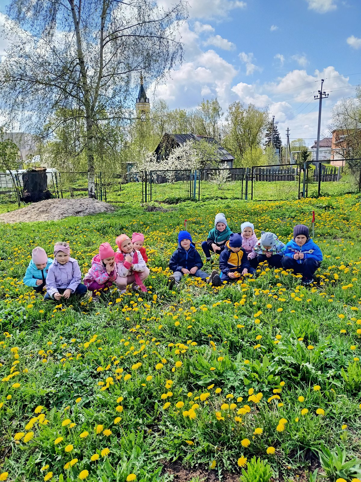 . Провели целевую прогулку по любимым местам вокруг детского сада «Одуванчики вокруг нас». Во время прогулки рассматривали одуванчики, изучили строение цветка, узнали, что одуванчики превращаются в пушистые, как облачка, шары и ветер уносит маленькие парашюты с семенами далеко от растения. Выучили стихотворение Е.Серовой «Одуванчик», прочитали сказки: «Приключение маленького одуванчика», «Антошкин одуванчик»
