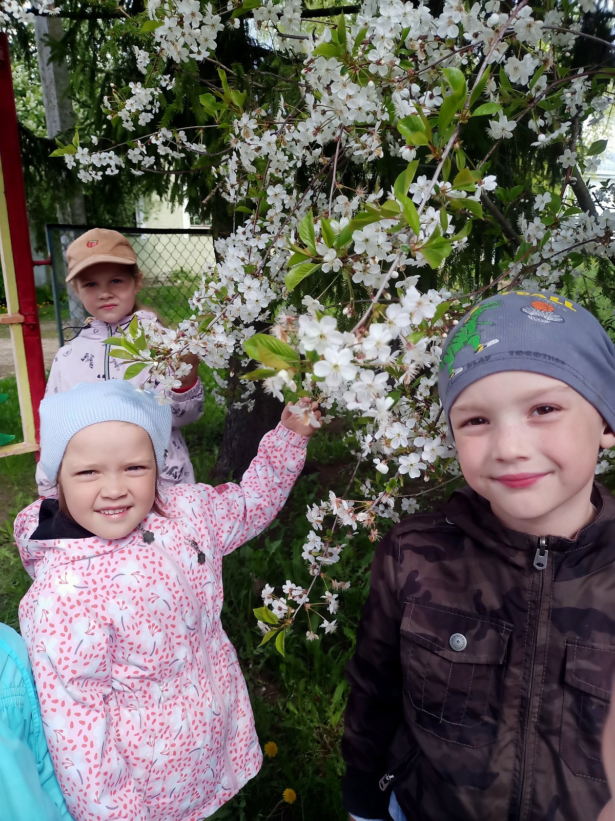 Как много нового и интересного можно узнать на прогулке! Вот и сегодня дети нашего сада наблюдали за цветущей вишней. Воспитанники любовались вишневым садом и наблюдали за работой трудолюбивых пчел, которые весело гудели возле цветочков. А потом воспитанники старшей группы "Смешарики" отразили свои впечатления в творческой работе, создав яркую коллективную аппликацию «Цветение вишнёвого сада»!