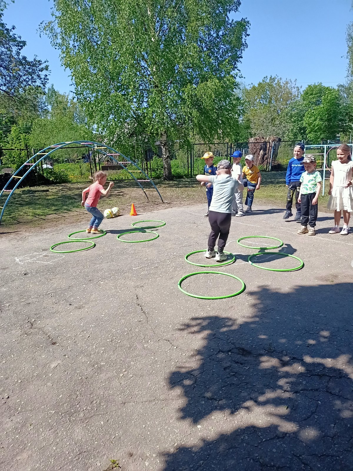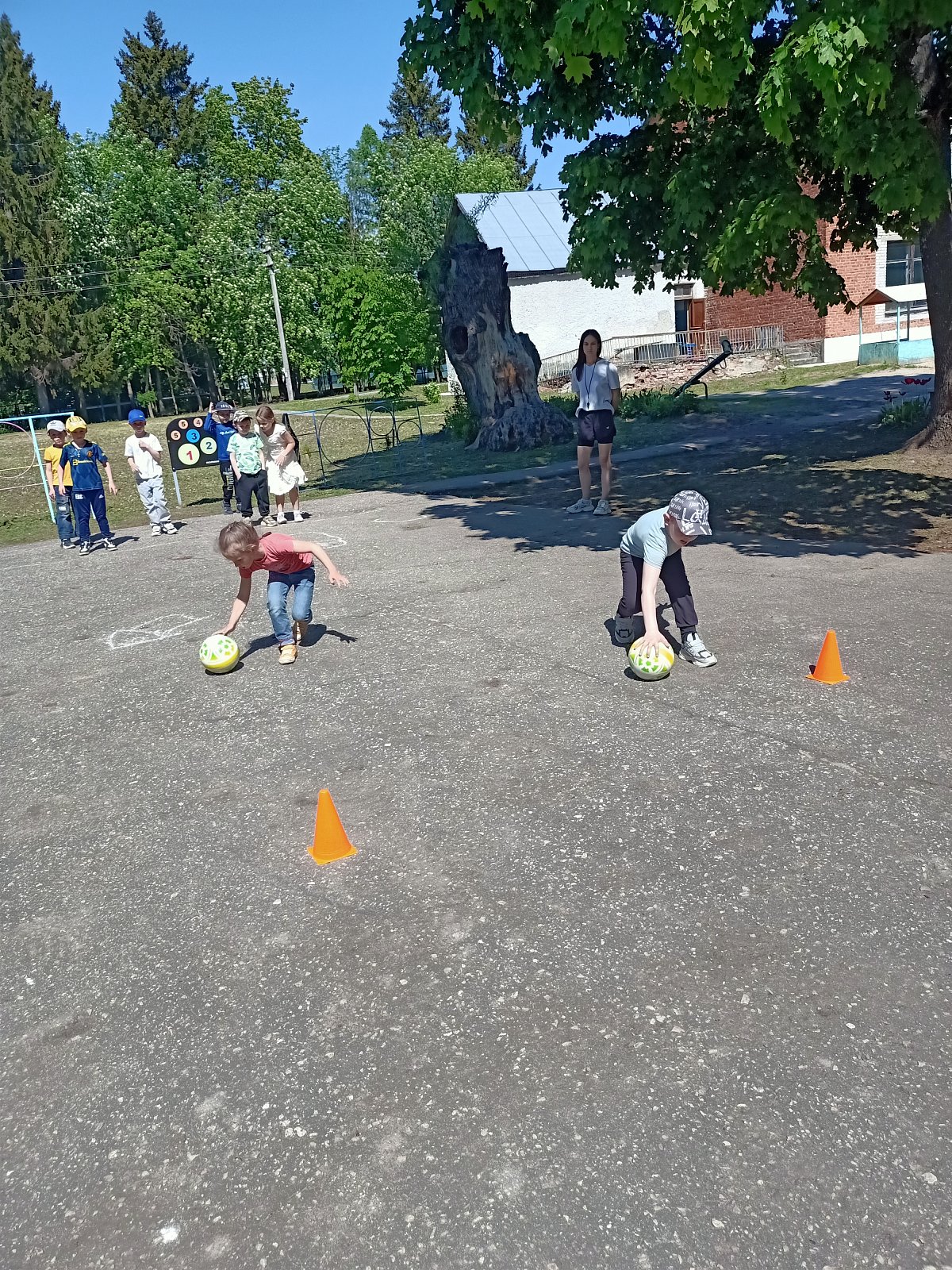 . Сегодня на спортивной площадке детского сада для ребят старшей группы «Смешарики» прошли спортивные эстафеты «Вместе с друзьями», которые организовали работники Дома культуры..