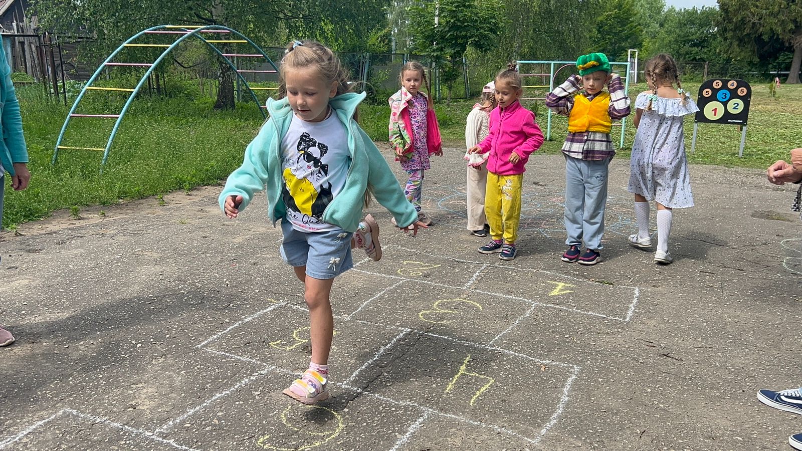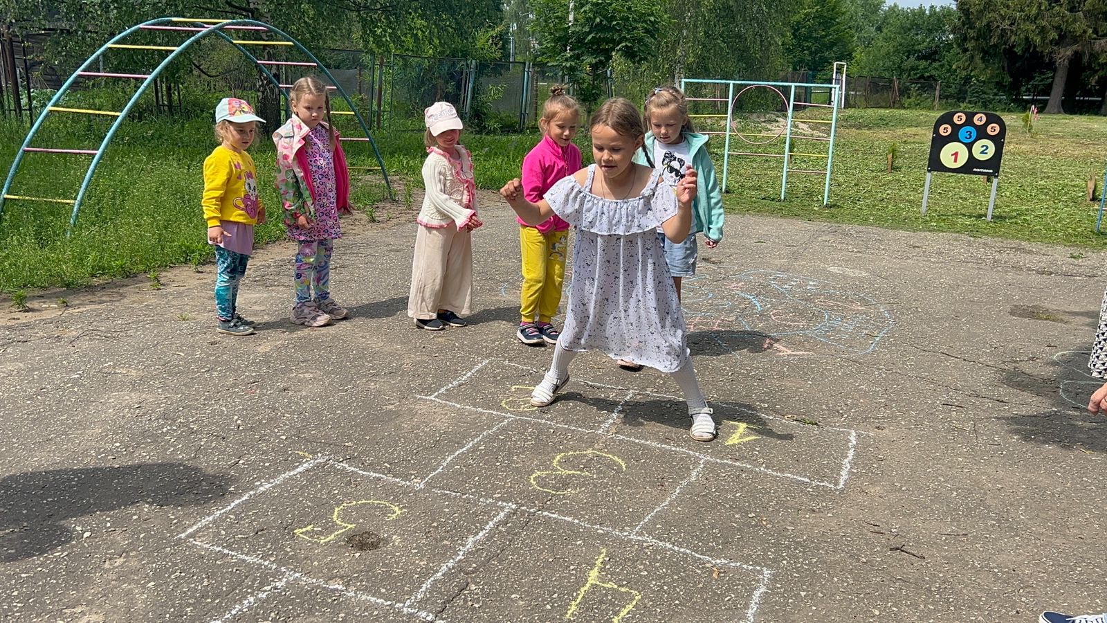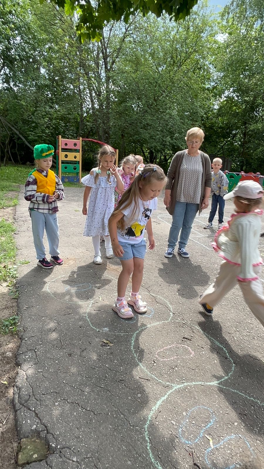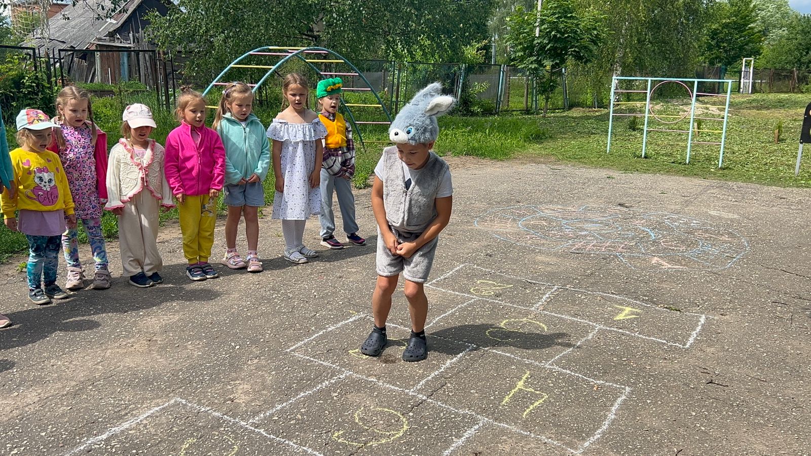 Июньским солнечным днём у ребят старшей группы «Смешарики» прошло развлечение «Весёлые классики», организованное работниками спортзала и Дома Культуры.