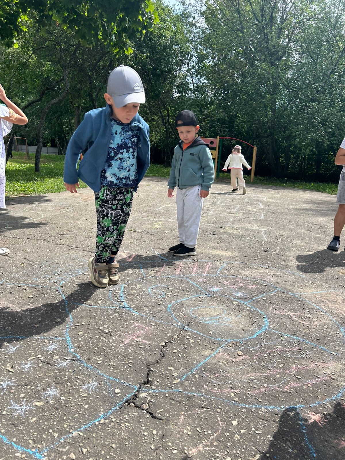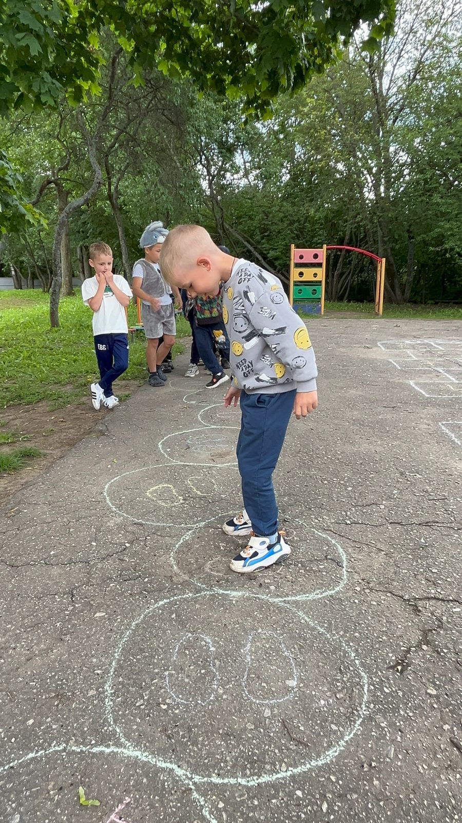 Это одна из наиболее распространённых форм двигательной активности детей на воздухе. Сегодня ребята познакомились с разными видами игры в "классики ": «Линейка», «Улитка», «Путаница»