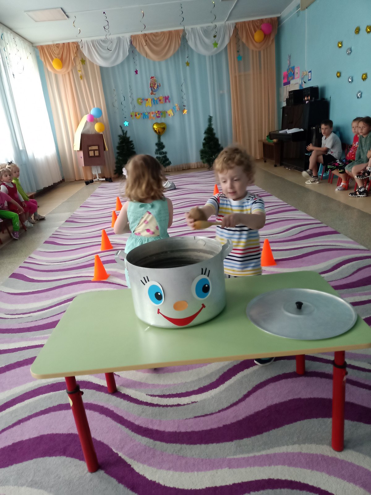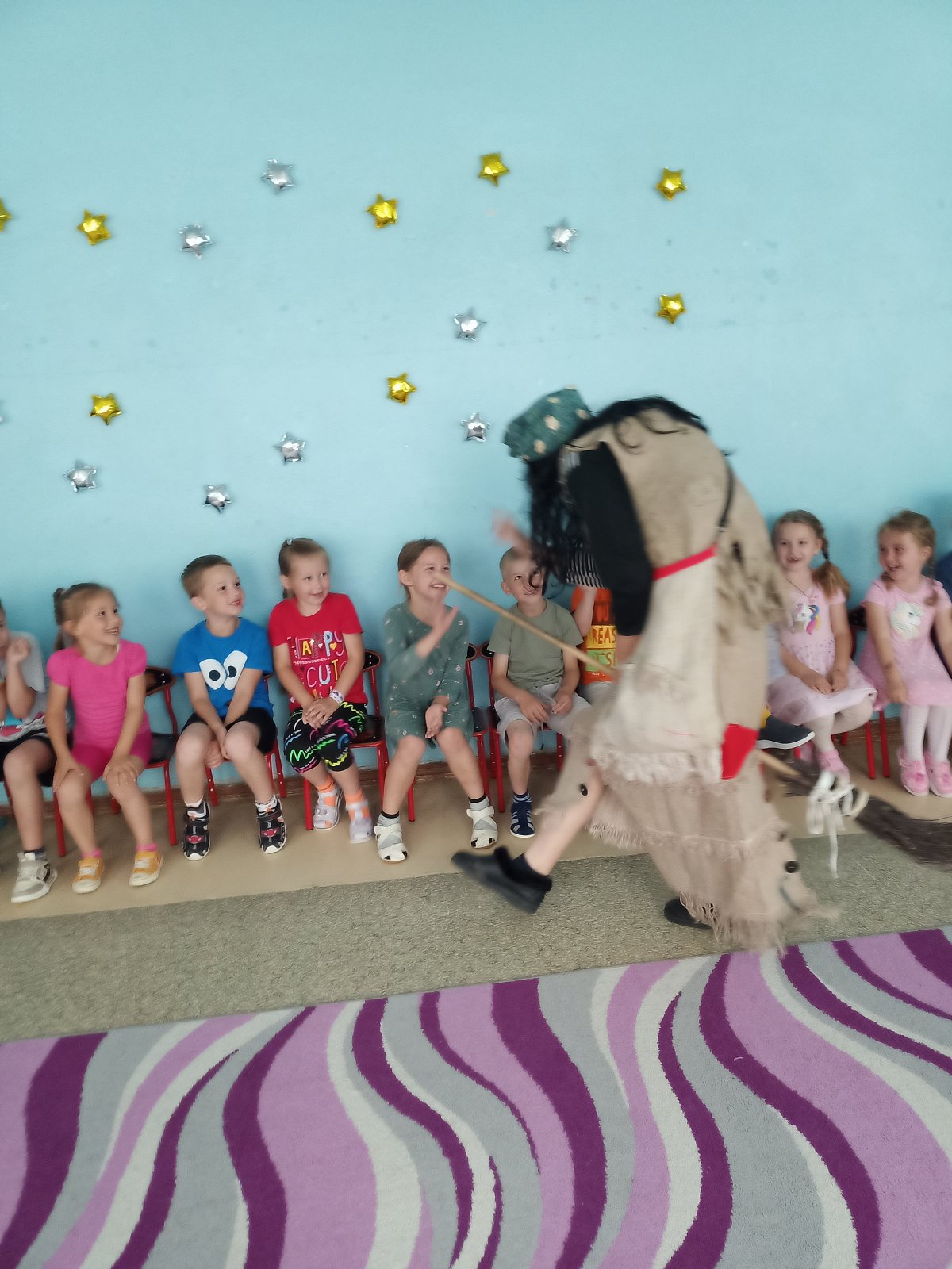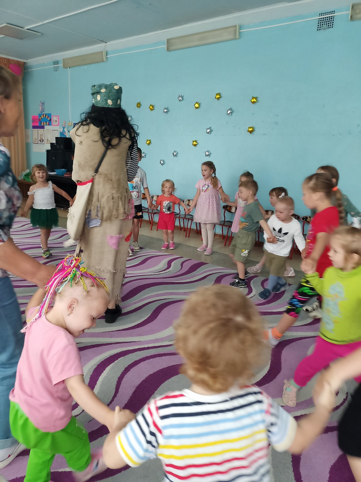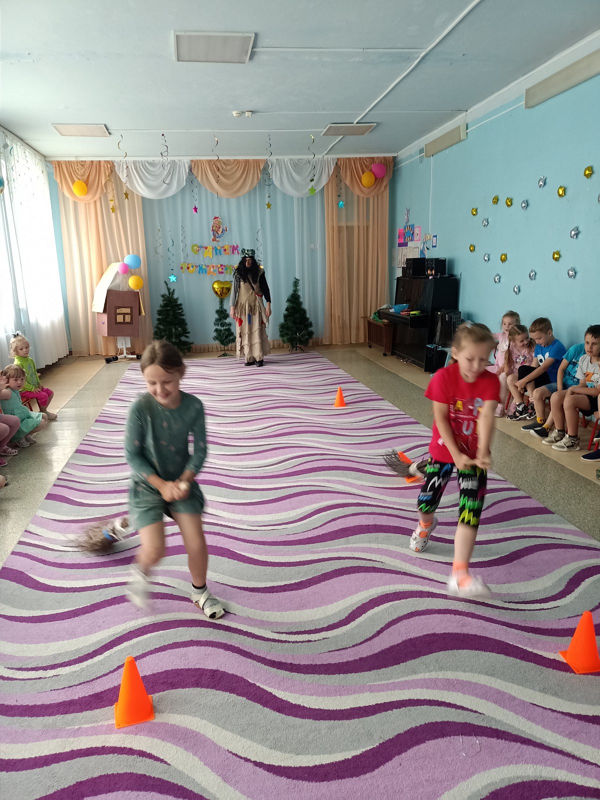 Дети помогли Бабе Яге приготовить угощение из полезных продуктов, угостили тортом, покатались на волшебной метле и танцевали. В конце мероприятия дети встали в большой хоровод и исполнили песню "Каравай" для Бабы Яги. Ребята пожелали Бабе Яге здоровья, успехов, быть красивой и доброй, никого не обижать.