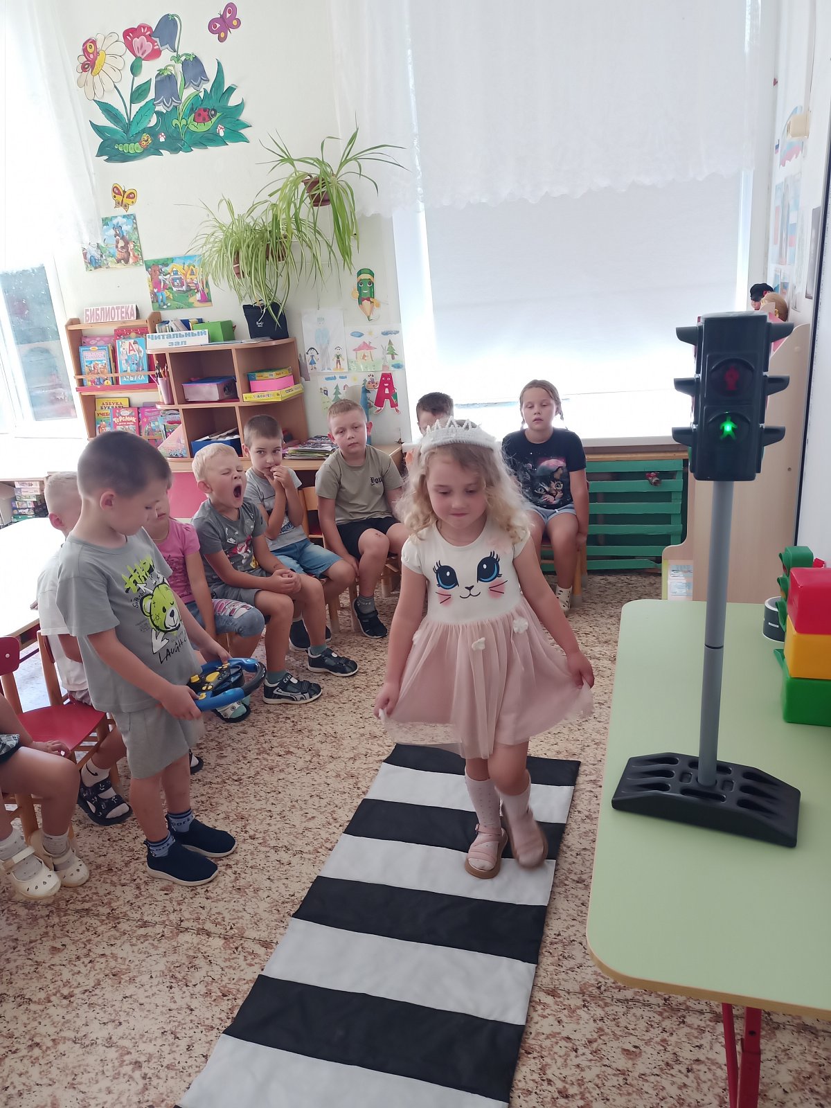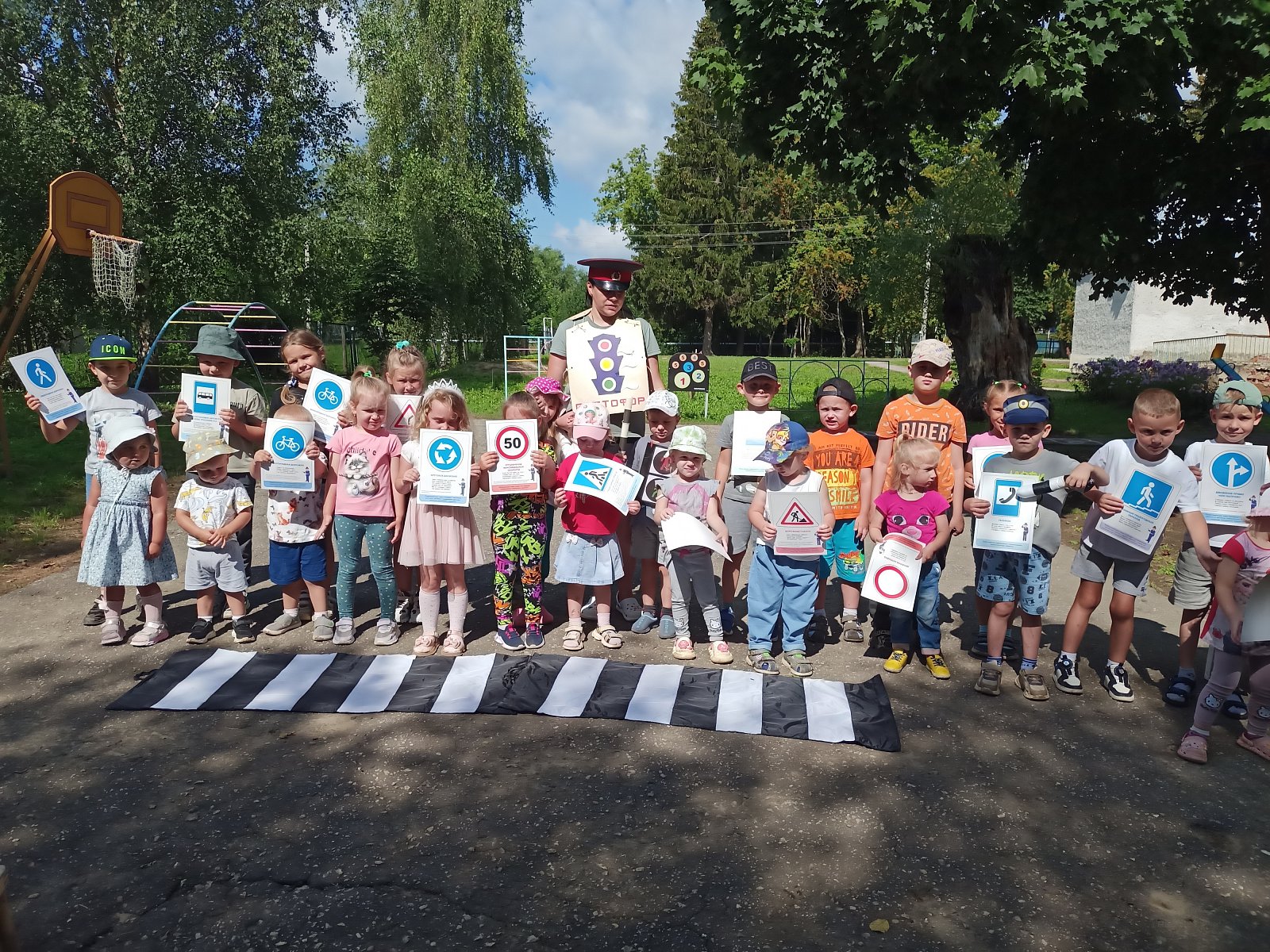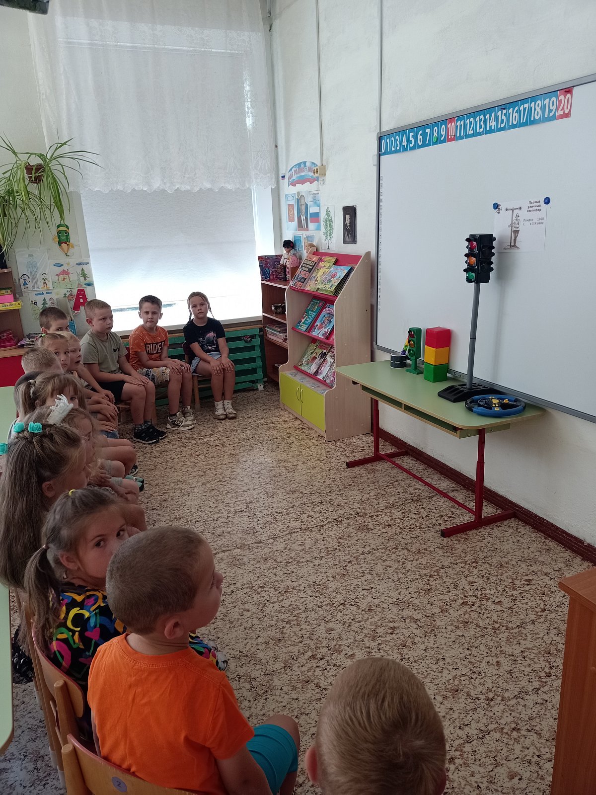 Дошкольники узнали, когда появился первый светофор и какие бывают виды светофоров.. В гости к детям пришёл сам Светофор. В игровой форме ребята закрепили знания о светофоре и правила дорожного движения, разгадав сложные загадки , участвовали в эстафетах: «Собери Светофор», «Построй пешеходный переход», и «Самокатом и велосипедом управляю, правила я соблюдаю»