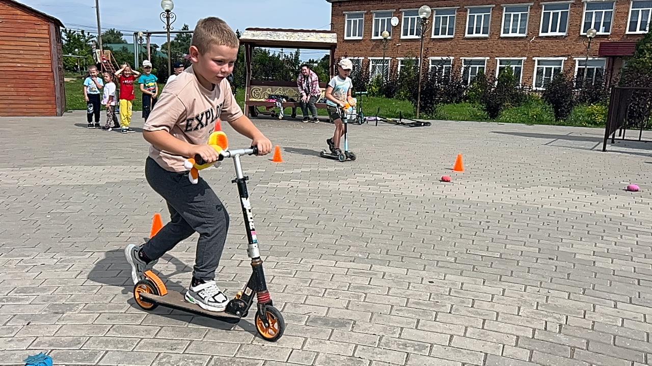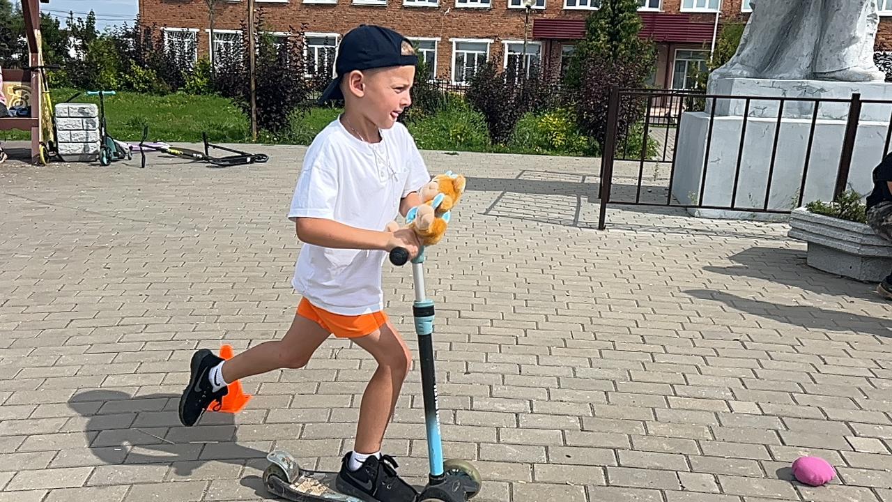 12 августа в детском саду в рамках плана мероприятий на летний оздоровительный период, с целью развития двигательной активности детей, прошел спортивный досуг «Лето на самокатах». Подготовила и провела мероприятие работник Дома культуры Кузьмичева Елена Александровна. Воспитанники соревновались в быстроте, ловкости и продемонстрировали свои умения в катании на самокатах, а также закрепили правила дорожного движения.