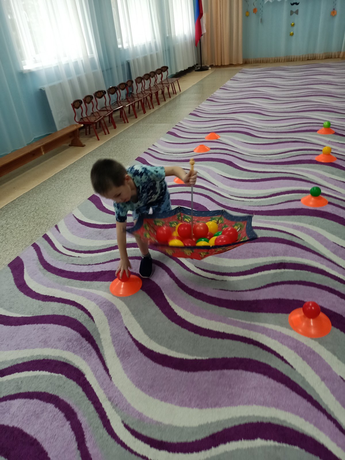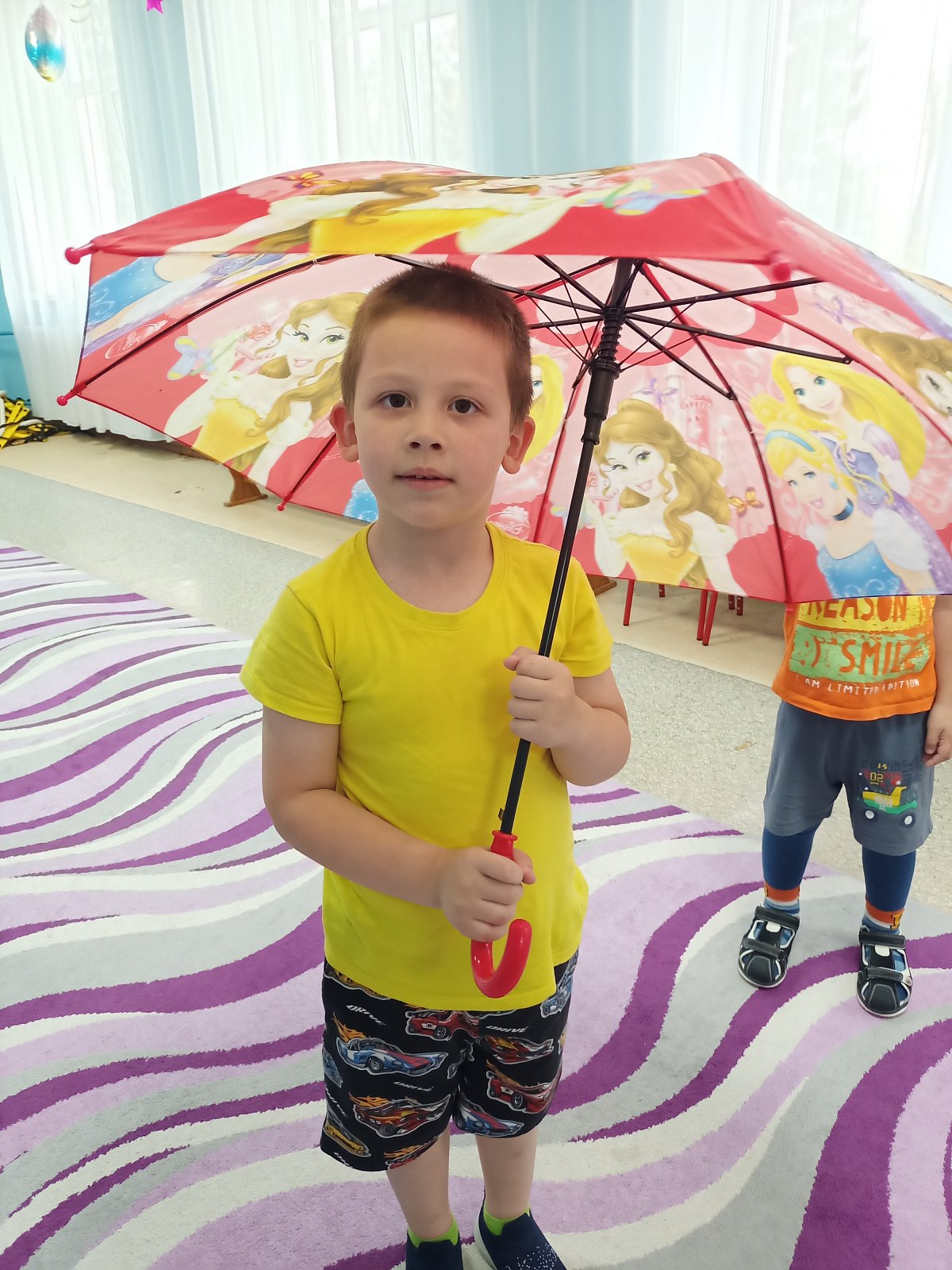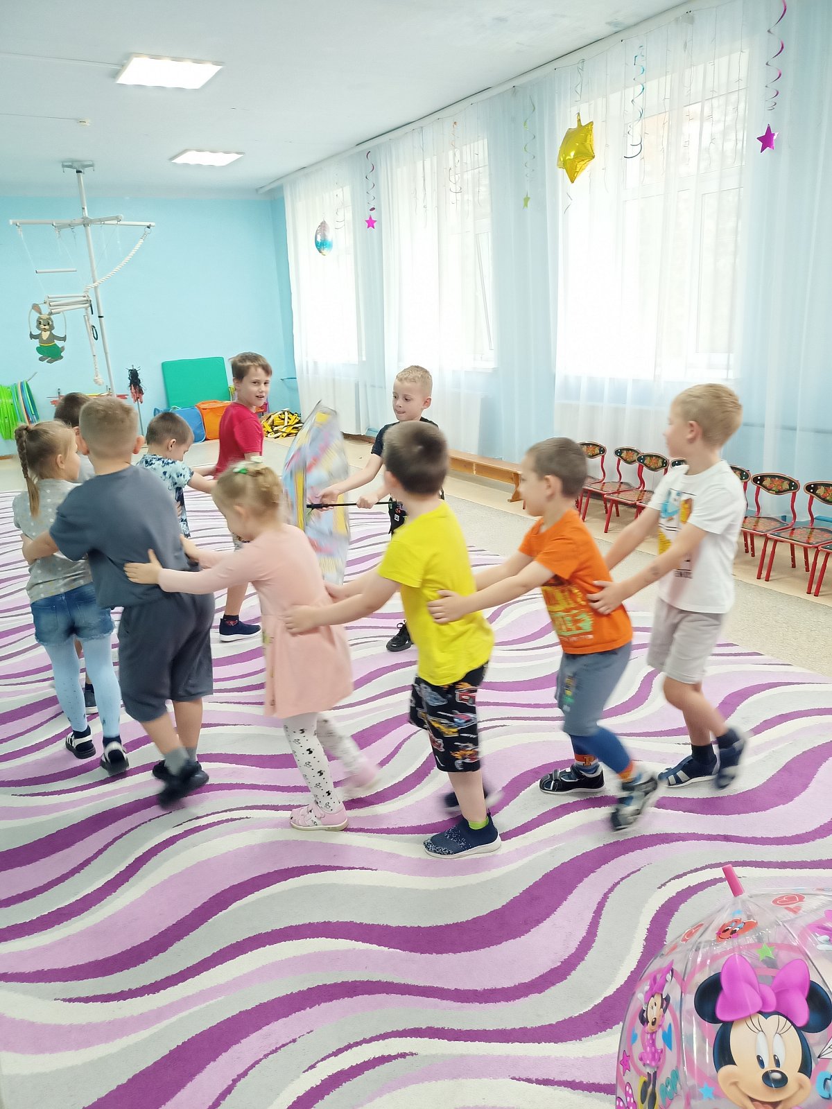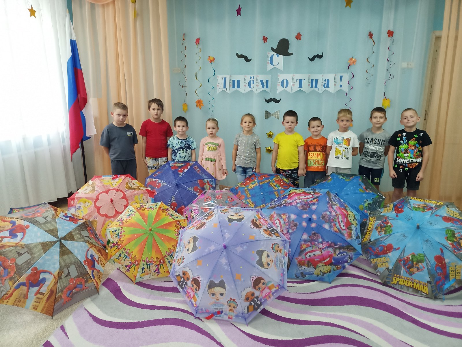 Дети старшей группы «Смешарики» совершили путешествие в историю происхождения зонтика. Ребята узнали, что первый зонтик появился в Китае, что он был предназначен для защиты от солнца, познакомились с многообразием зонтов, их строением. Они увидели, что зонты бывают с чехлом, надувные зонты, зонт – облако, зонт на двоих, зонт для собаки! Как же это здорово! Танцевать, кружить и веселиться под розовыми, красными, синими зонтиками. Дети с удовольствием играли в игры «Мой зонтик», «Пробеги с зонтиком через лужи», «Волшебный зонт»… «Собери яблоки в зонтик»