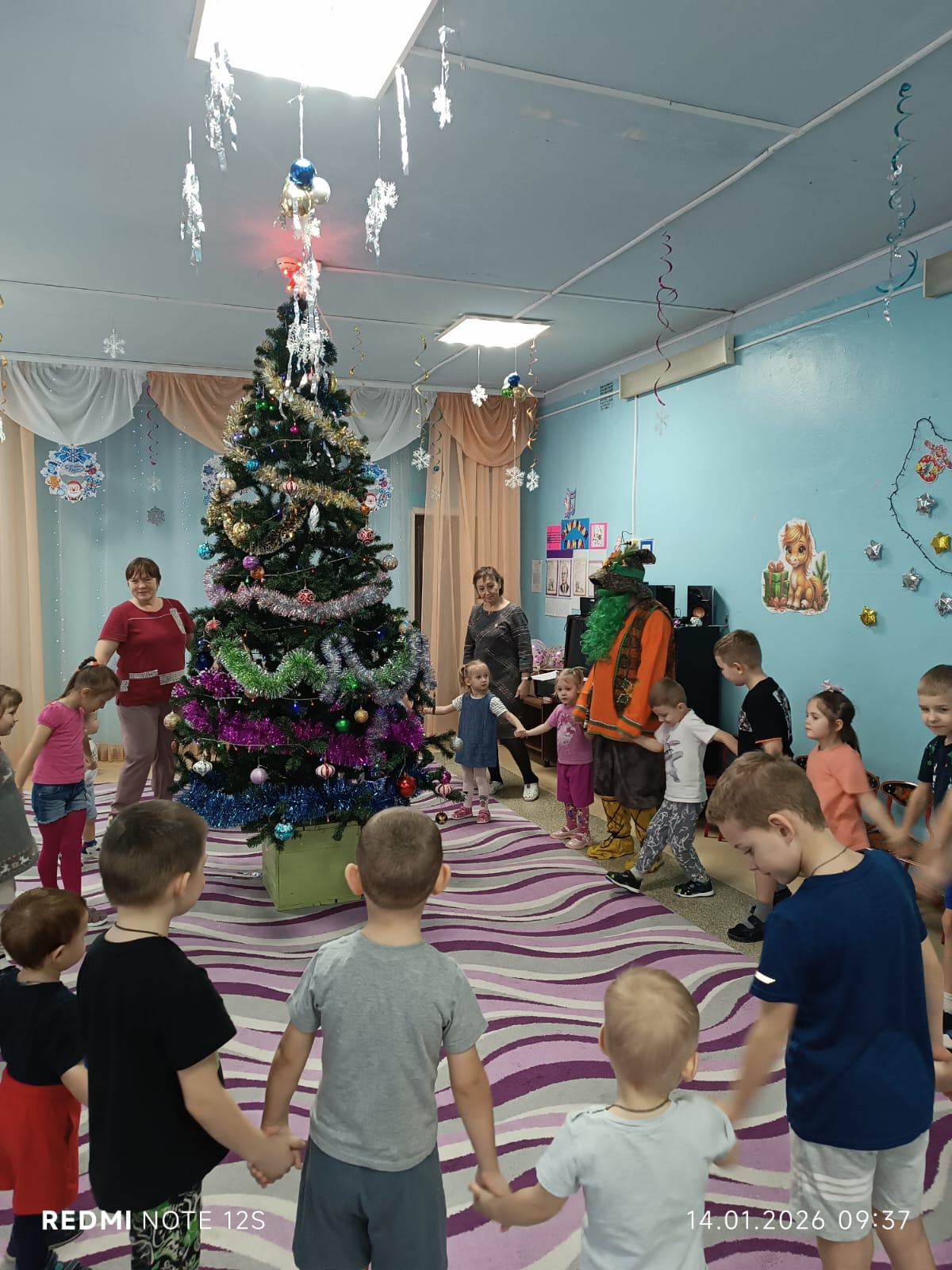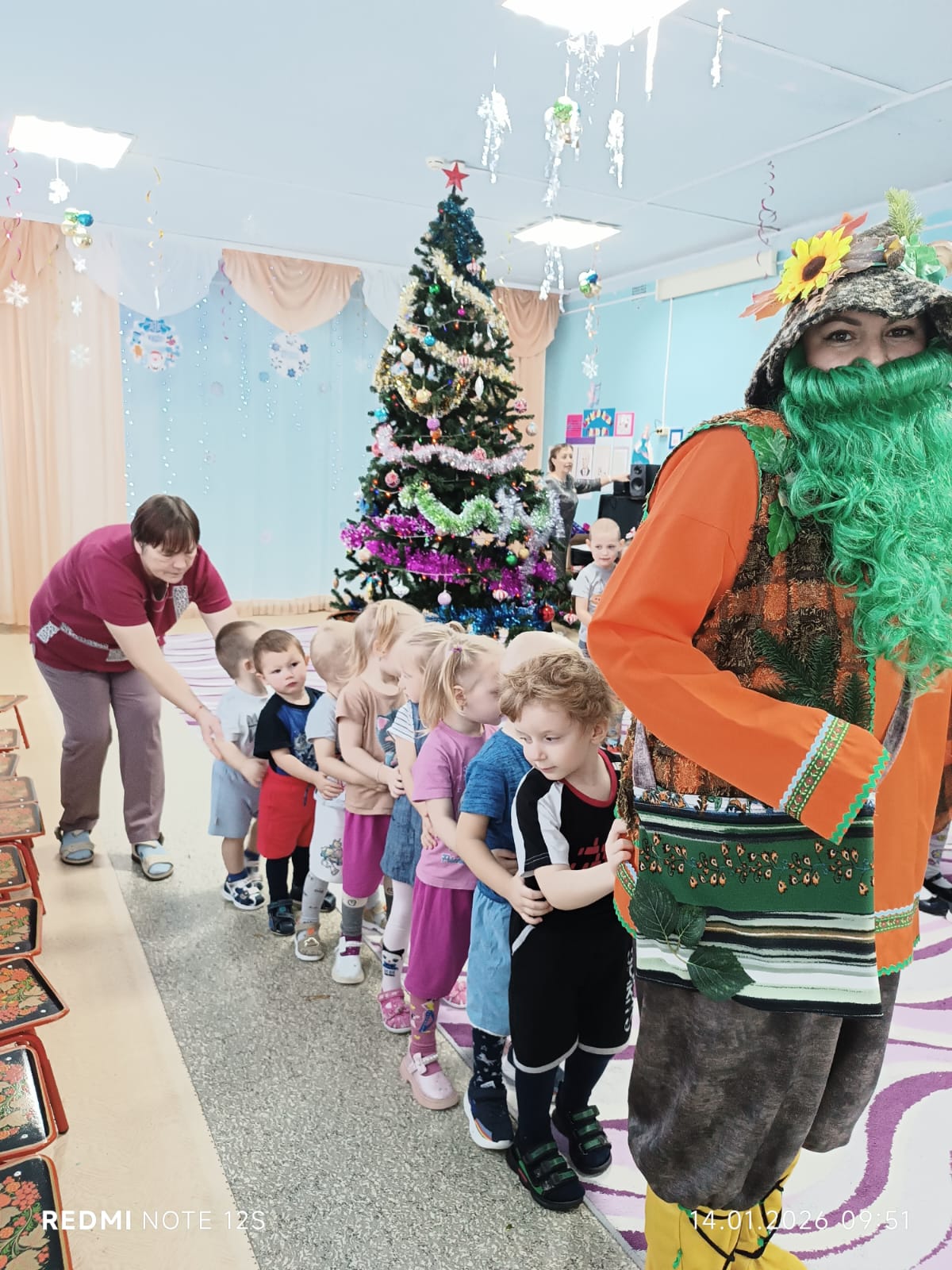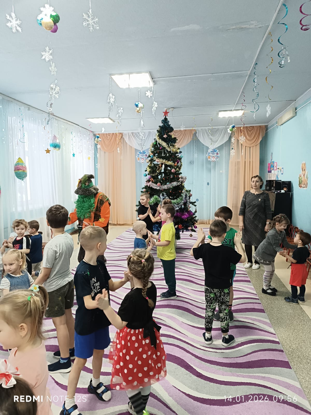 Очень трогательный момент, когда детишки шепотом попросили елочку прийти на следующий год. Новогодняя красавица, прощаясь с детворой, погасила свои огни.