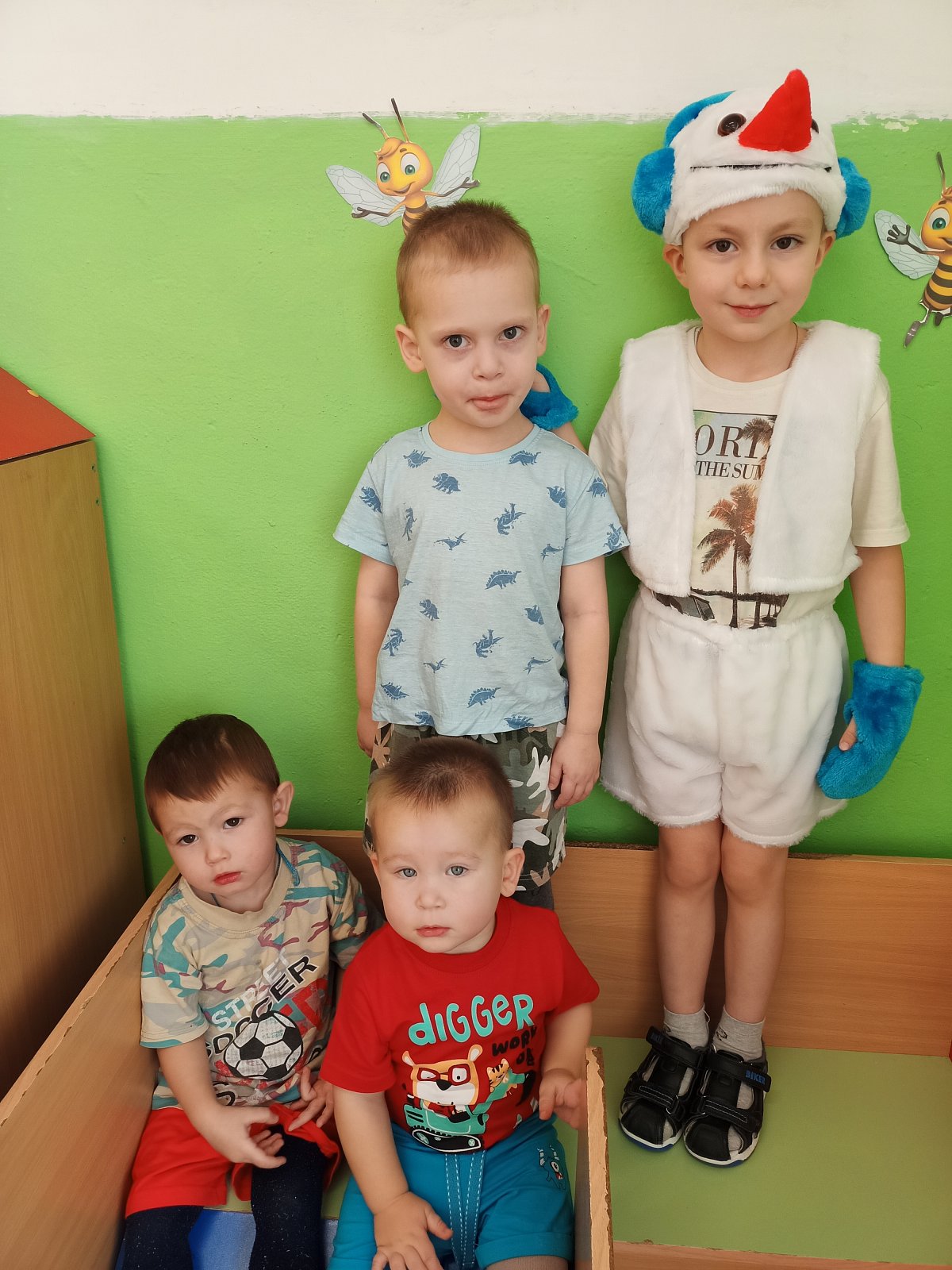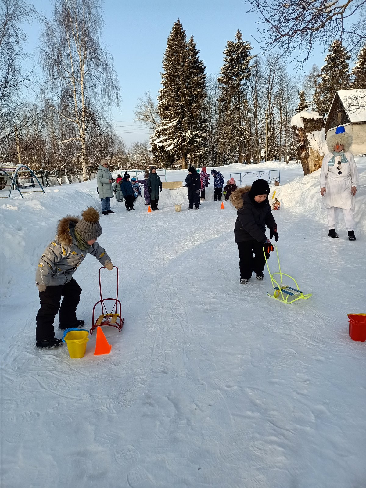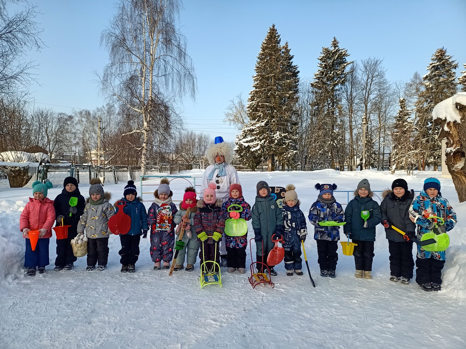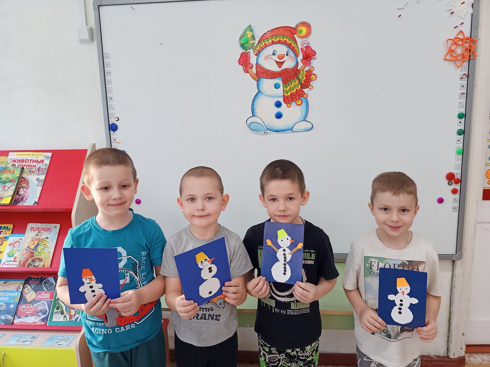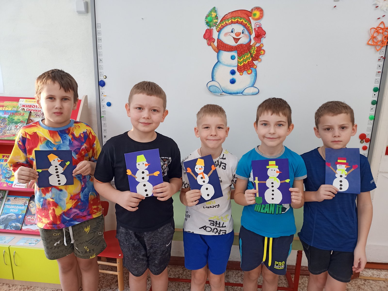 Ребята старшей группы выполнили аппликацию «Снеговики из Дедморозовки», про которых они читали, книгу. А на прогулке всех детей ждал сюрприз – к дошколятам пришел сам Снеговик и устроил веселые игры и эстафеты .со снежками. Снеговик подарил детям лыжи, ледянки, чтобы прогулки проходили еще интереснее и, конечно, сладкие призы.