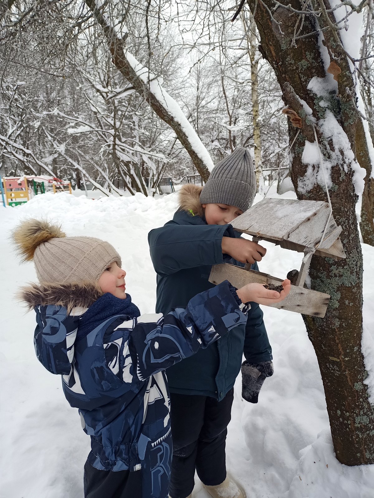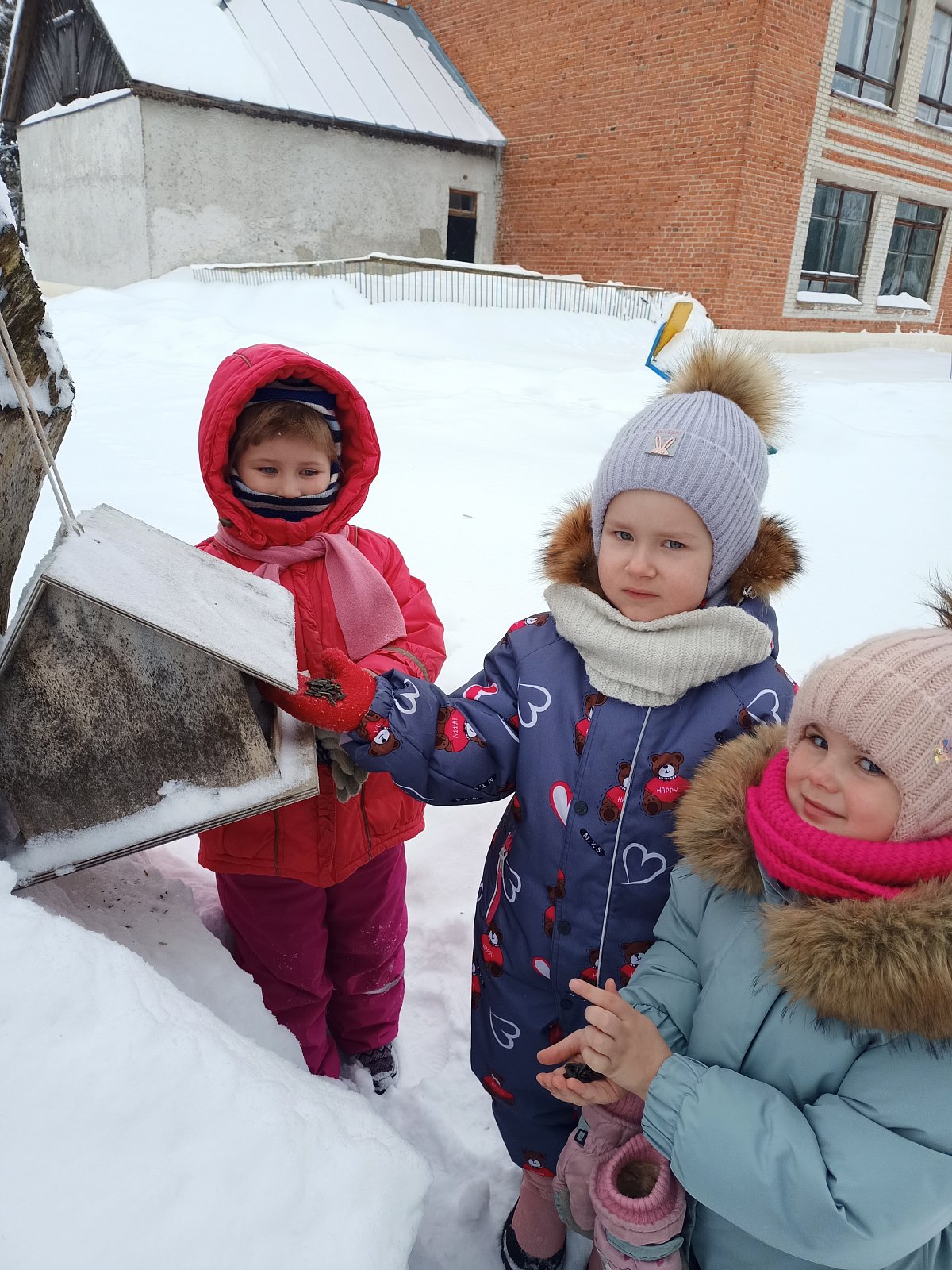 Это хорошая и важная традиция приучать детей заботиться о братьях наших меньших. Ребята знают, что они делают важное и хорошее дело – помогают птицам в трудное зимнее время. А затем со стороны наблюдали, какие птицы прилетят первыми к кормушкам. И, конечно же, это были синички.