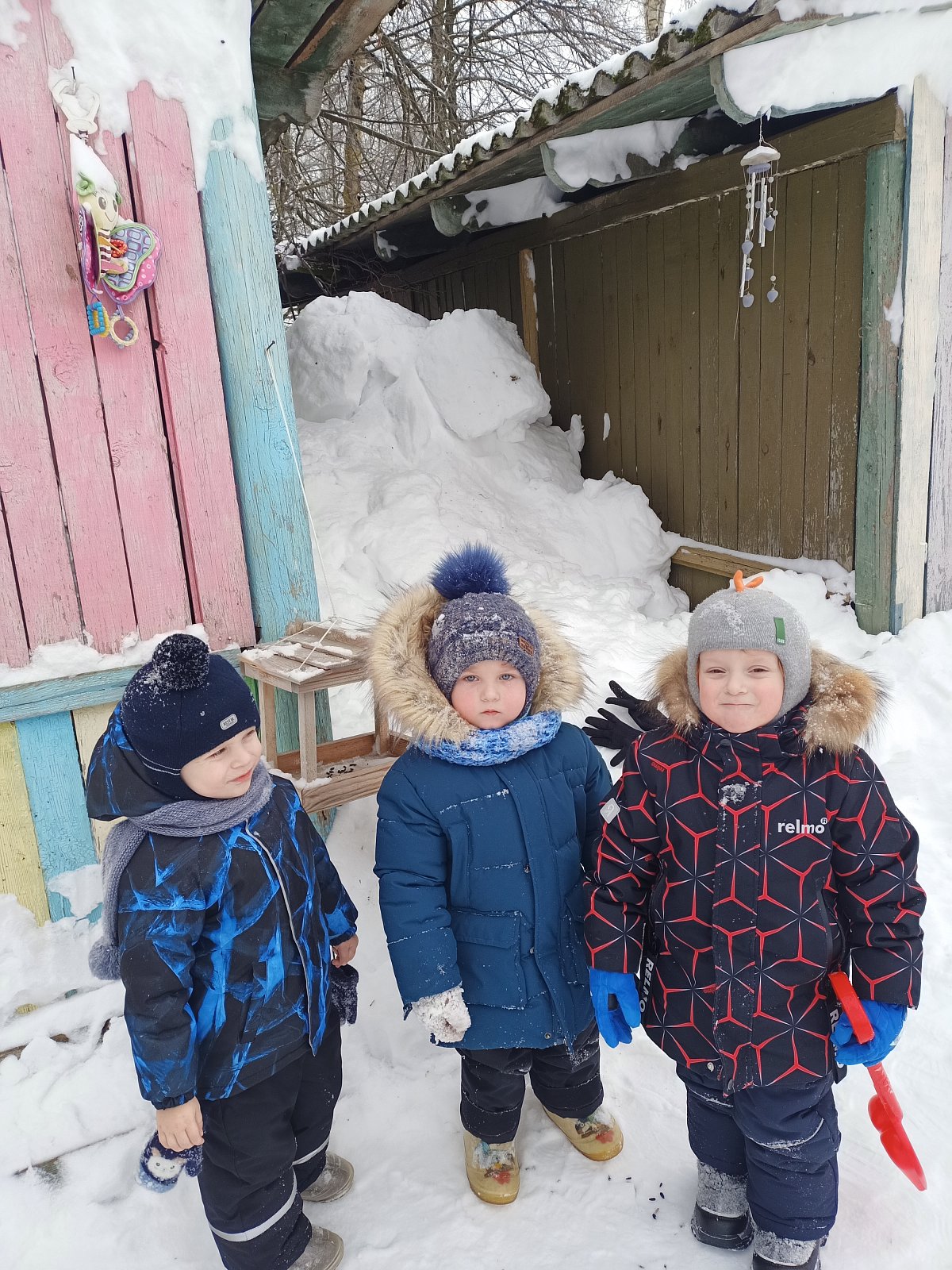 Во время прогулки погода была морозная, снега много, но это не помешало юным эколятам очистить кормушки от снега и наполнить их кормом.