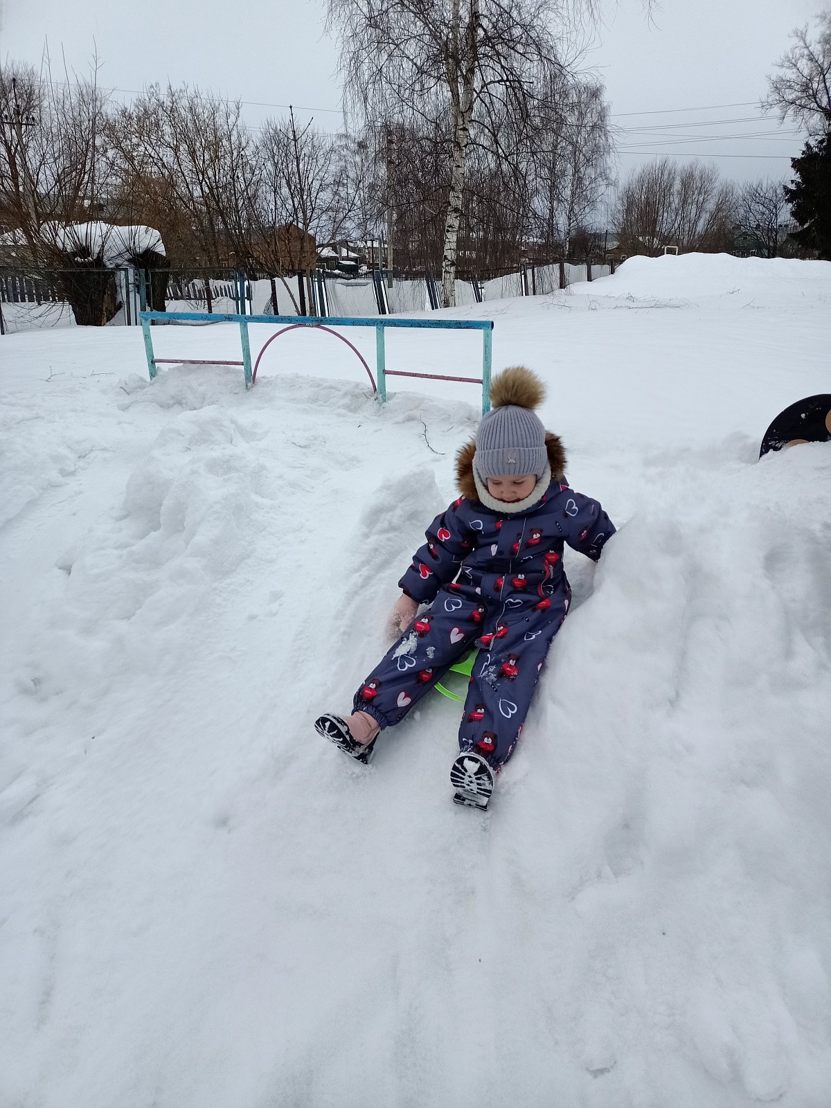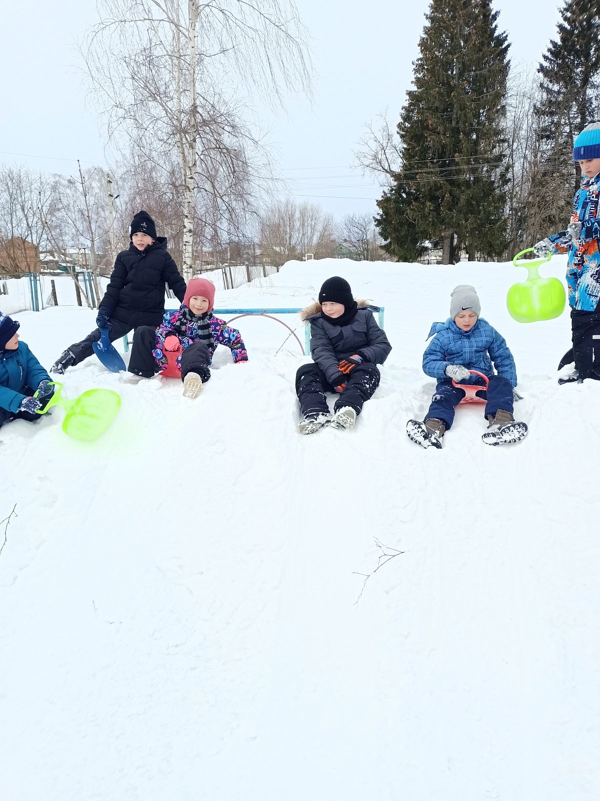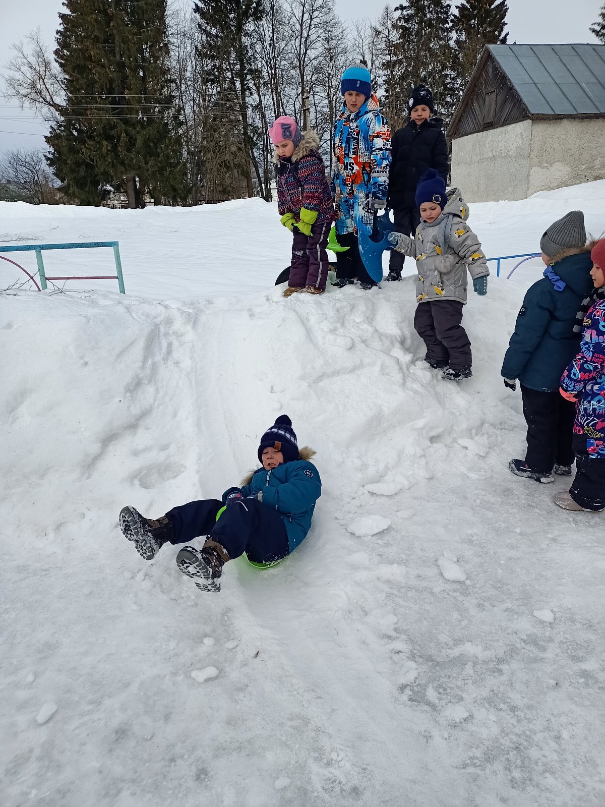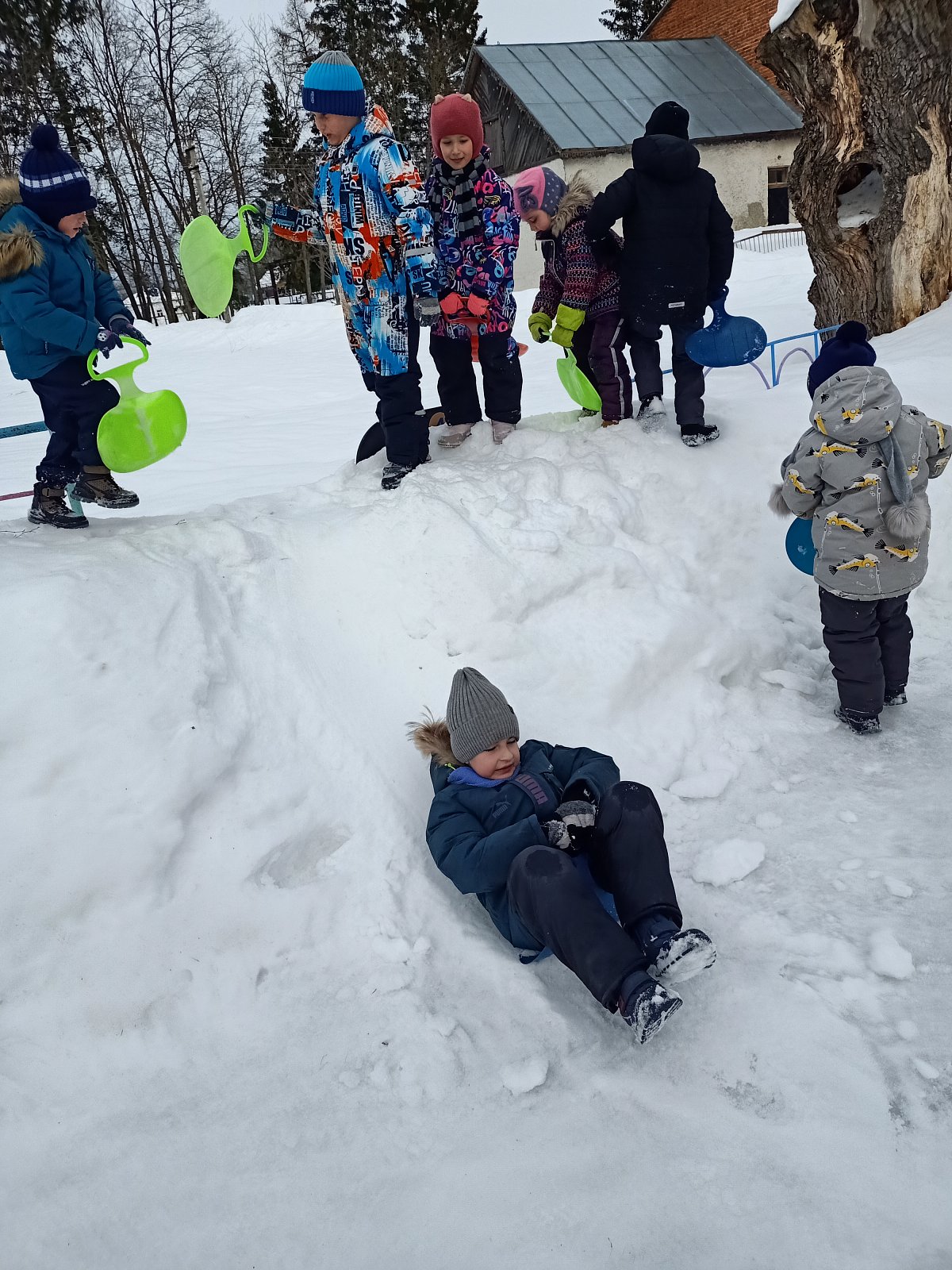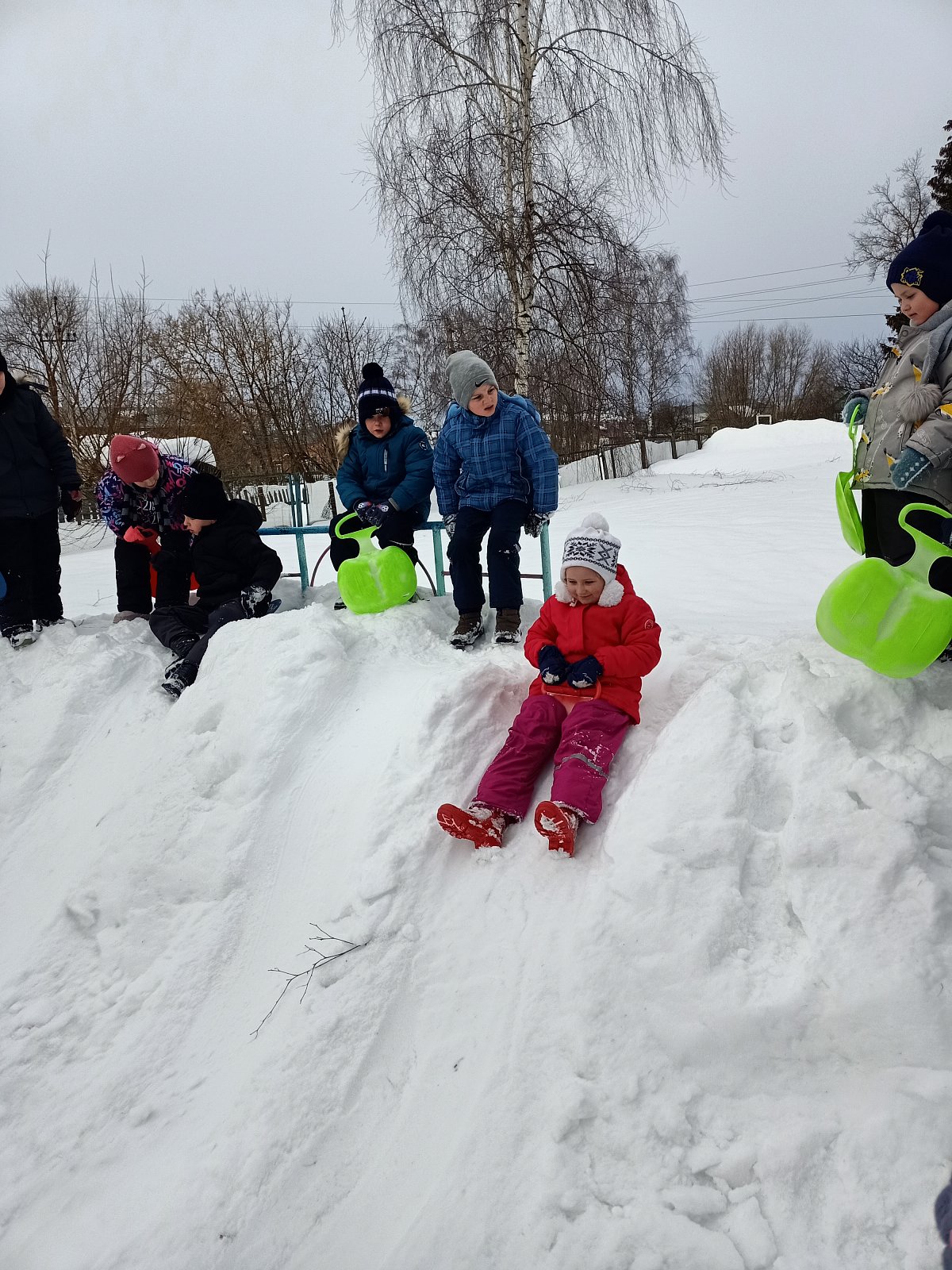 Зима закончилась, но зимние забавы для детей продолжаются. На участке детского сада еще настоящее царство зимы. Сегодня ребята старшей группы «Смешарики» на прогулке с удовольствием катались на ледянках со снежной горки.
