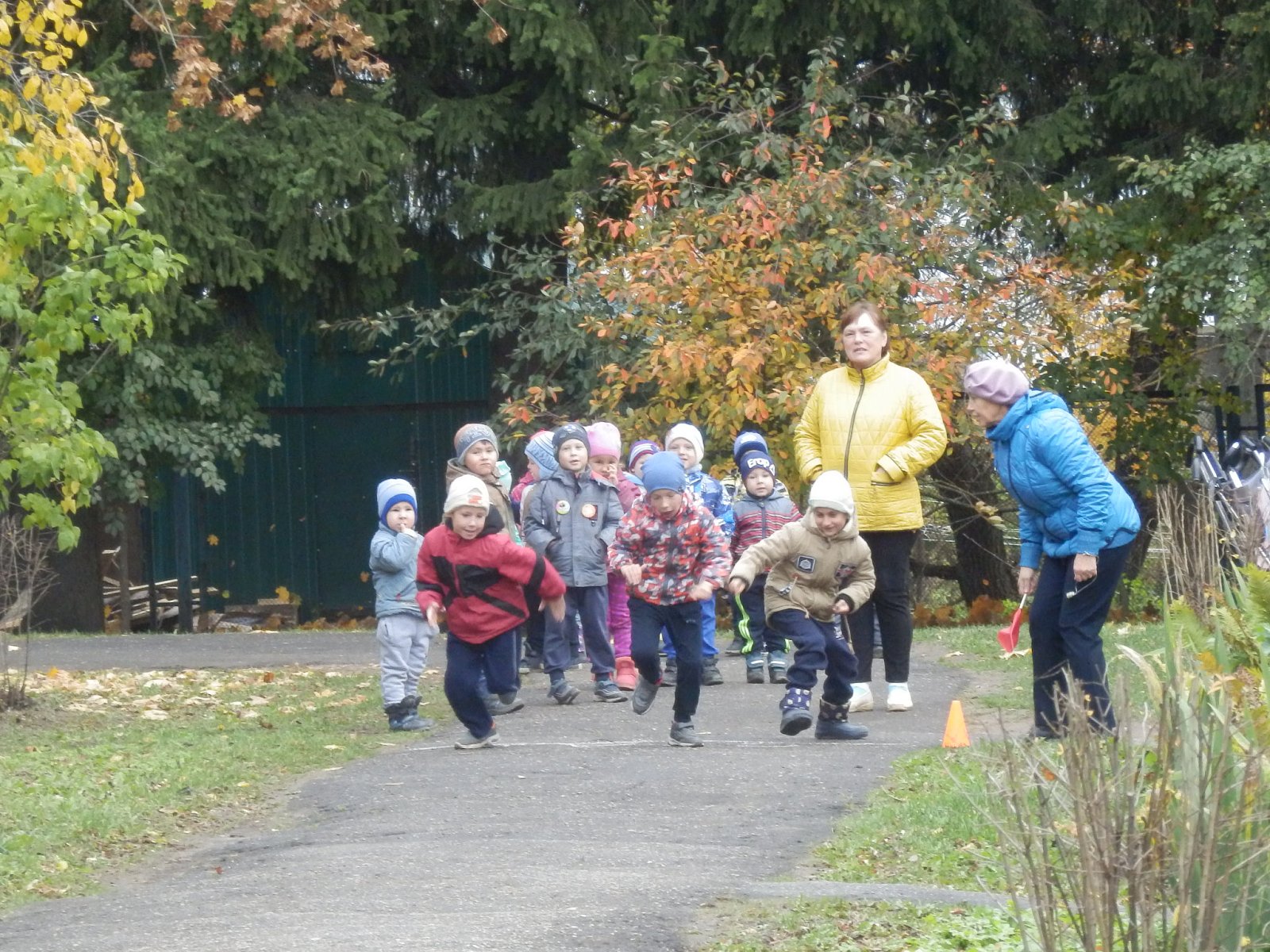 4 октября в нашей стране отмечался День Гражданской Обороны. В этом году, это была 87-я годовщина. В нашем детском саду прошло спортивное мероприятие «Осенний кросс», приуроченное к этому событию. В кроссе приняли участие не только воспитанники детского сада, но и все сотрудники. Каждый стремился к победе. Но для того, чтобы достичь наилучшего результата, необходима специальная подготовка, которую ребята получали на физкультуре, утренней гимнастике, в ходе игр-эстафет на прогулках. С большим стараньем ребята сделали весёлую разминку. Первыми пробежали свою дистанцию младшая разновозрастная группе «Пчелки». Они бежали вместе с воспитателем и помощником воспитателя.Потом на дистанцию вышла старшая группа "Смешарики" .Последними участвовали в забеге коллектив сотрудников детского сада. Чувствовался спортивный дух. Ребята с азартом наблюдали за тем как бегают участники. Старшие дошкольники поддерживали младших. Мероприятие было веселым, ярким, увлекательным. Все участники получили много позитивных эмоций. Каждый из ребят старался в полную силу пробежать дистанцию. Но это было весьма не просто. По окончанию соревнований были выявлены победители, занявшие 1 место: