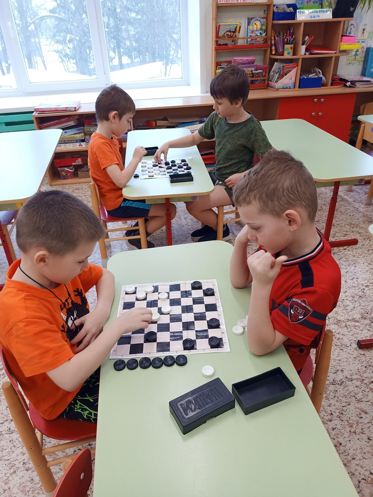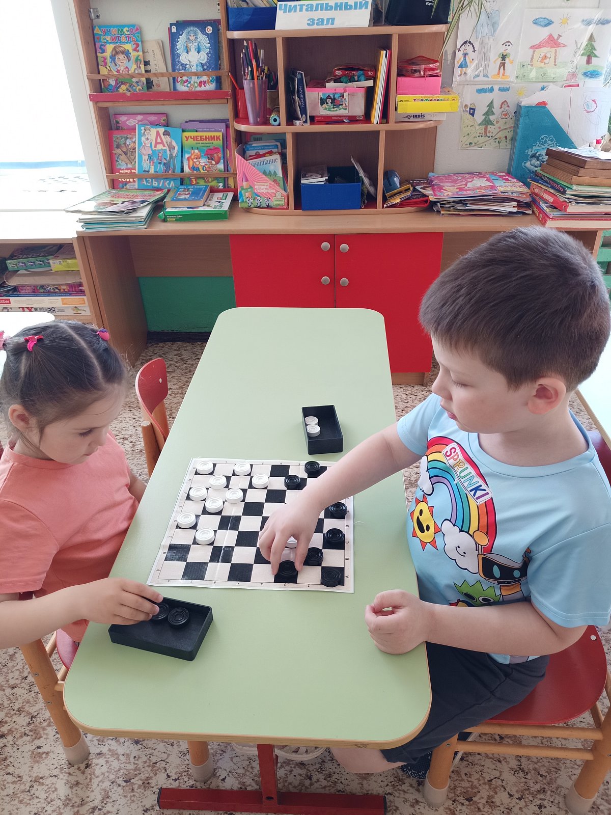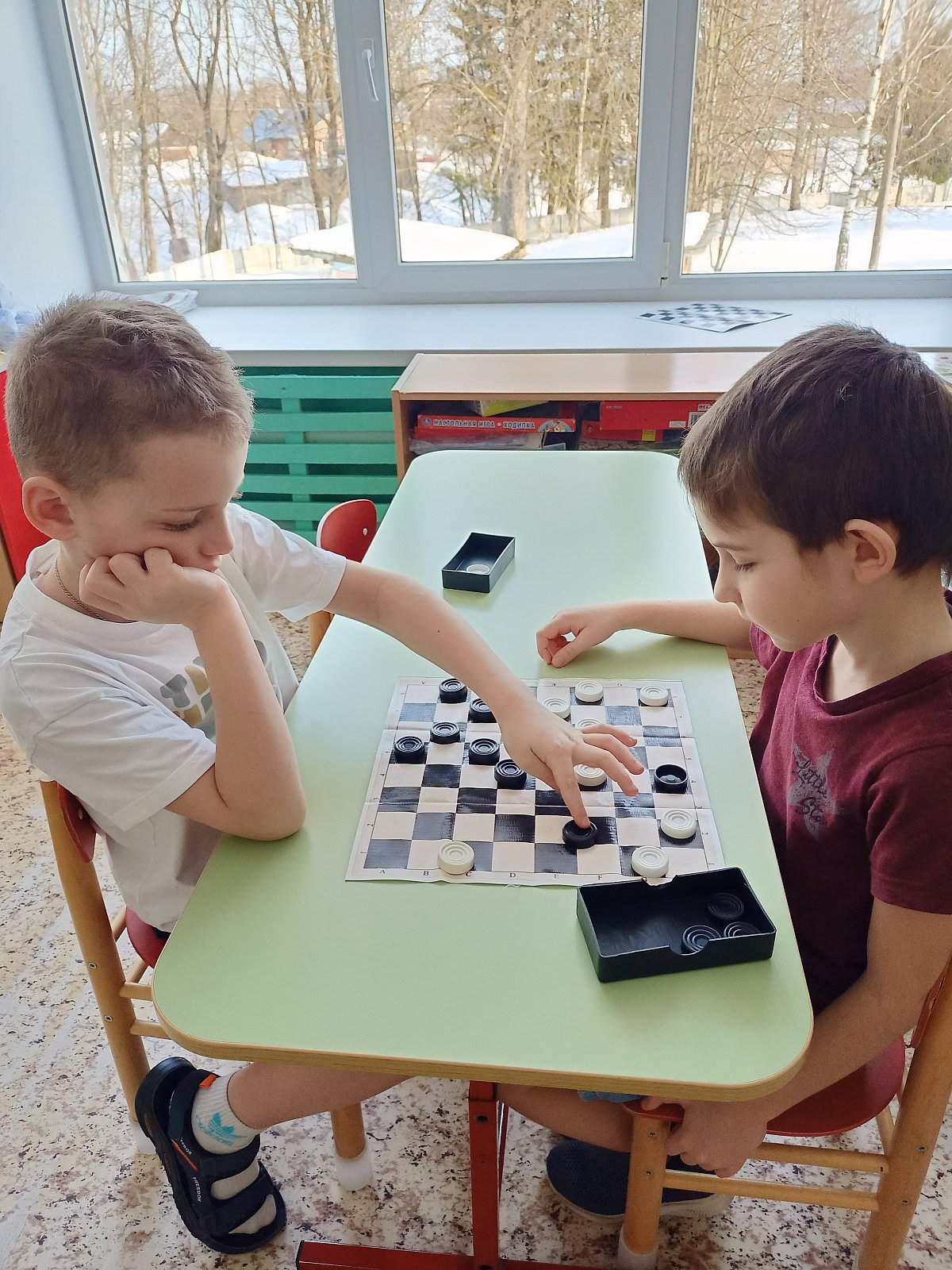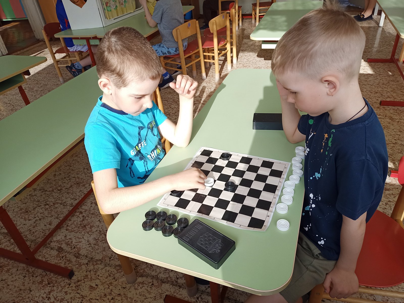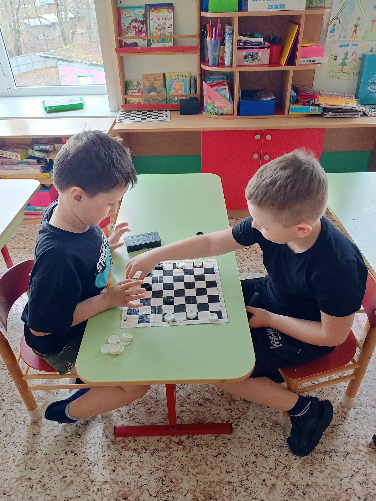 В старшей группе "Смешарики" ребята каждый день играют в шашки. Старшие дошкольники учат этой игре младших товарищей. Игра в шашки – это отличная идея для развития логического мышления.