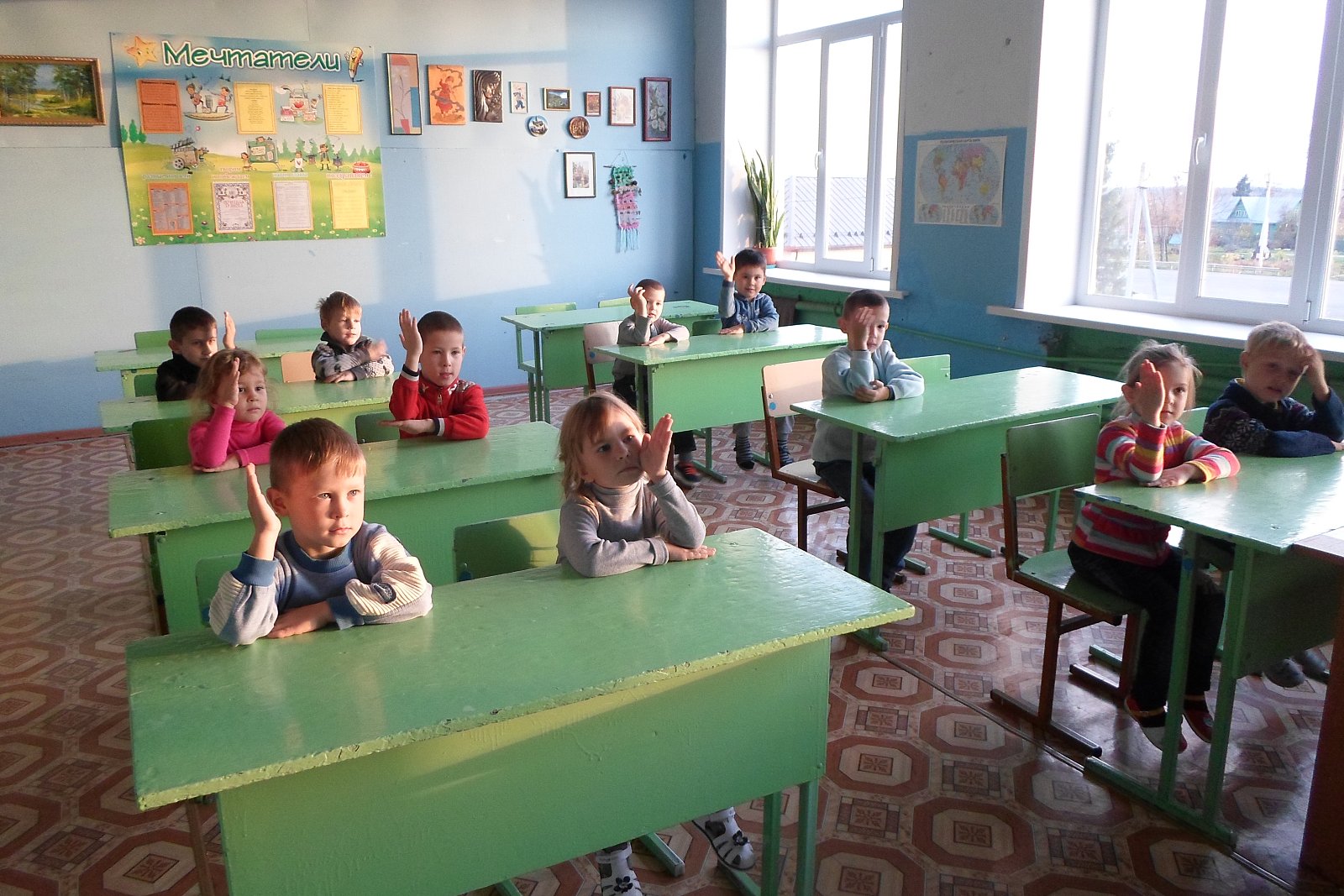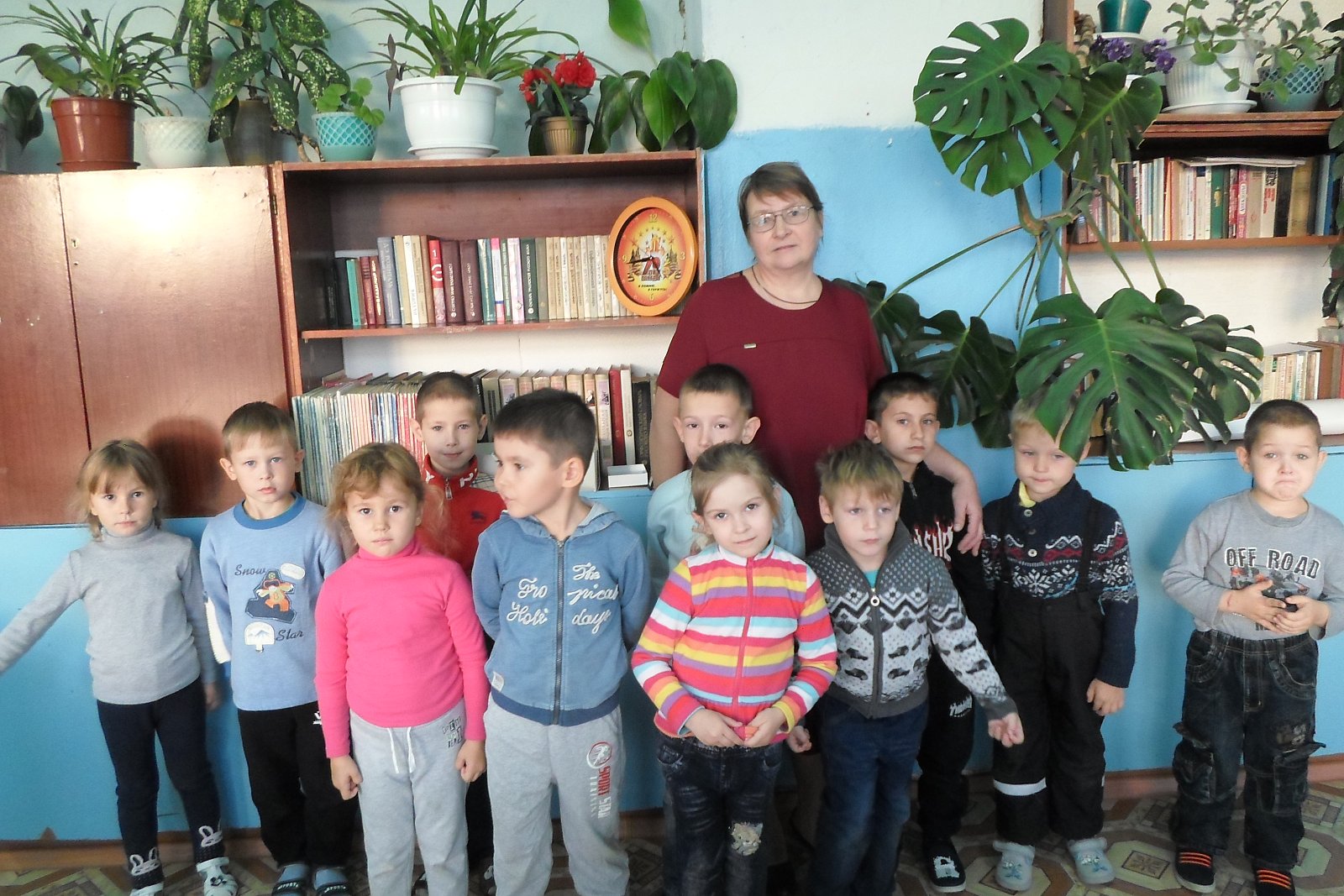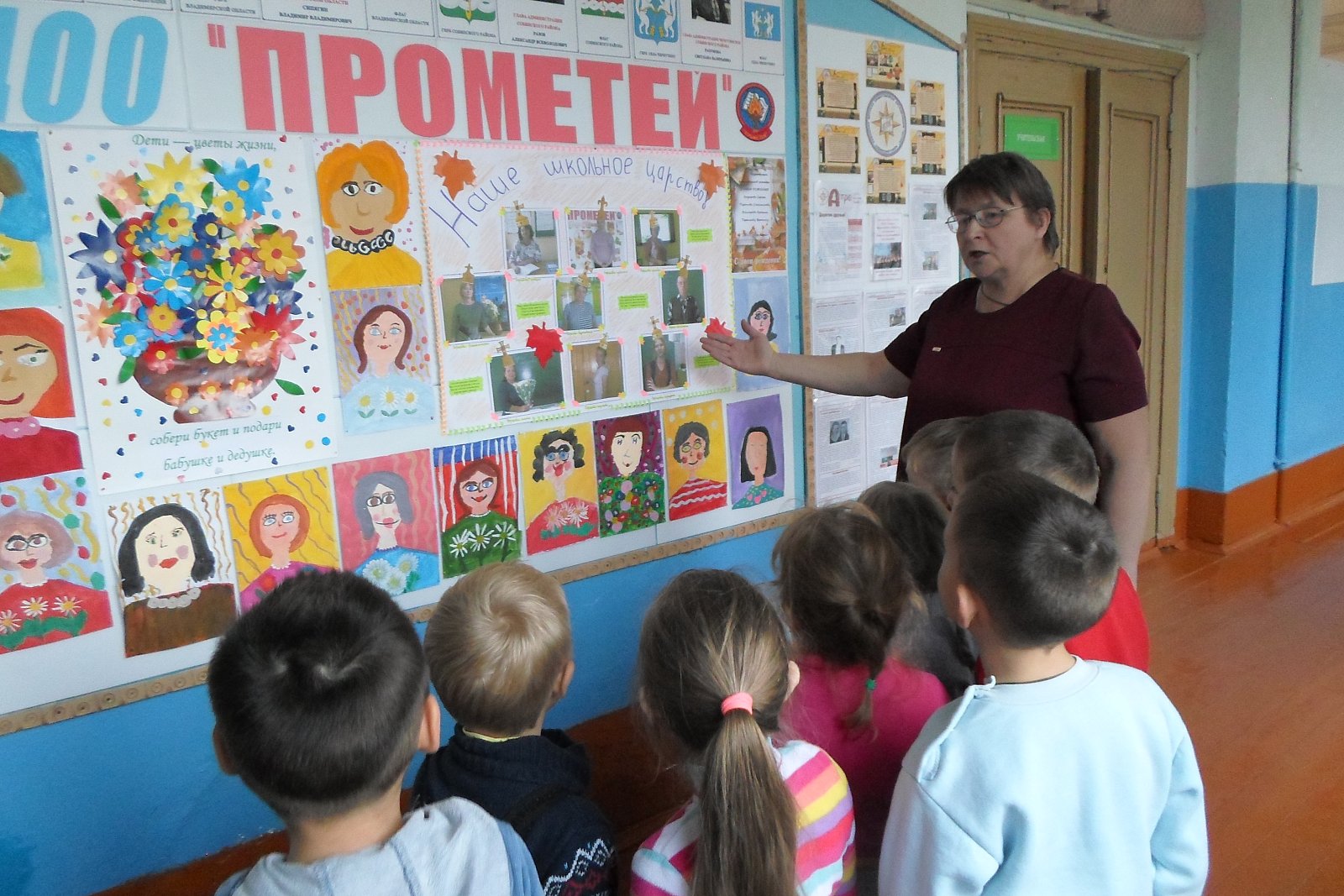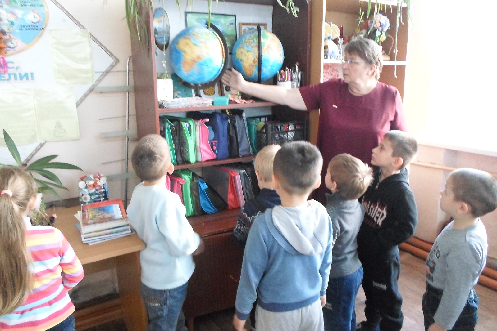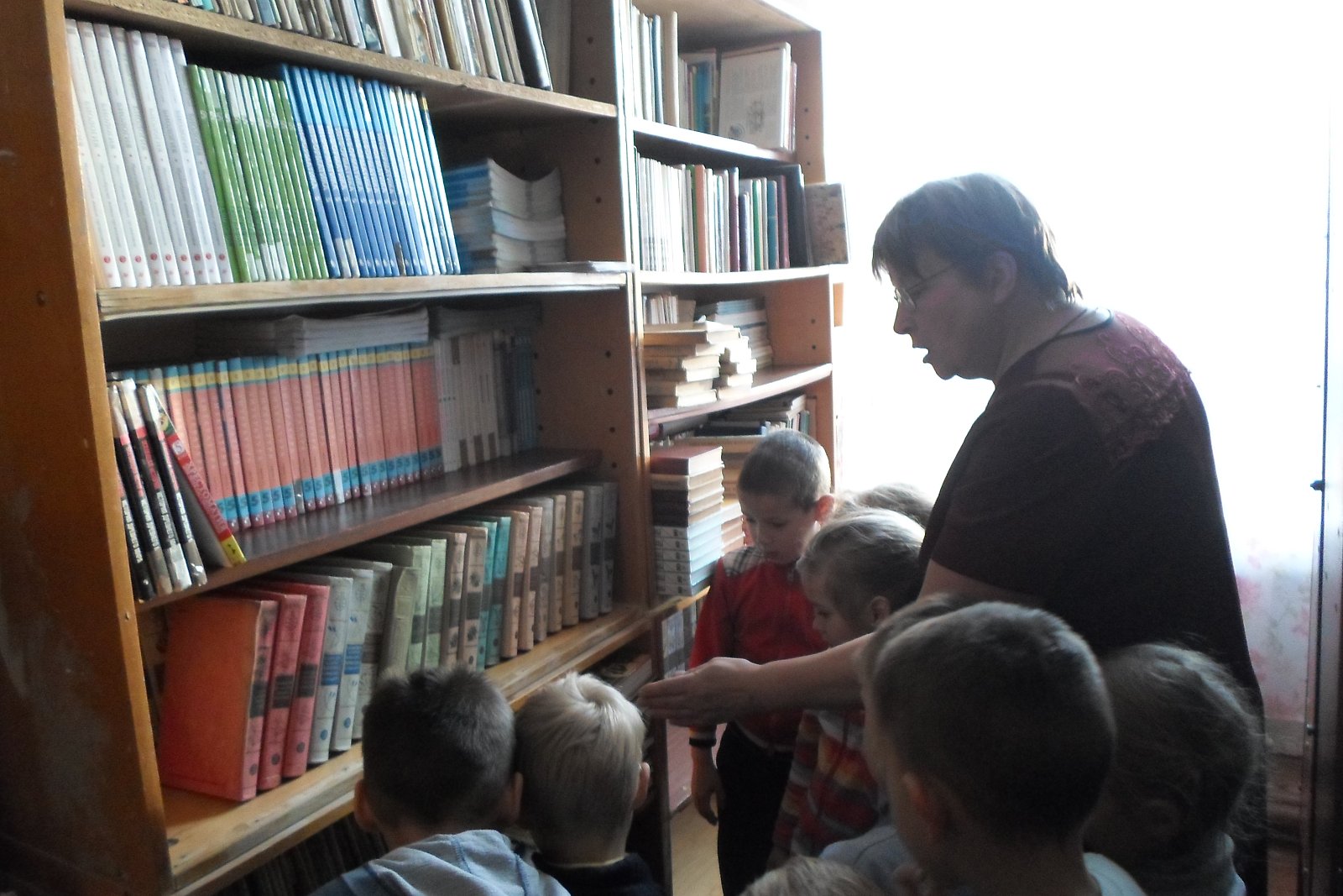 рассмотрели рисунки учеников, из фотостендов узнали о том, как интересно живут школьники и какие мероприятия проходят у них. В школьной библиотеке дошколята узнали, для чего она нужна книга и чем библиотека отличается от книжного магазина, получили порцию полезной информации о «жизни книжек». Ребята увидели, как много книг стоит на полках. Дошкольники побывали в кабинете директора и лично познакомились с ним, в учительской, в кабинете информатики, русского языка, в мастерской, в спортивном зале, столовой.